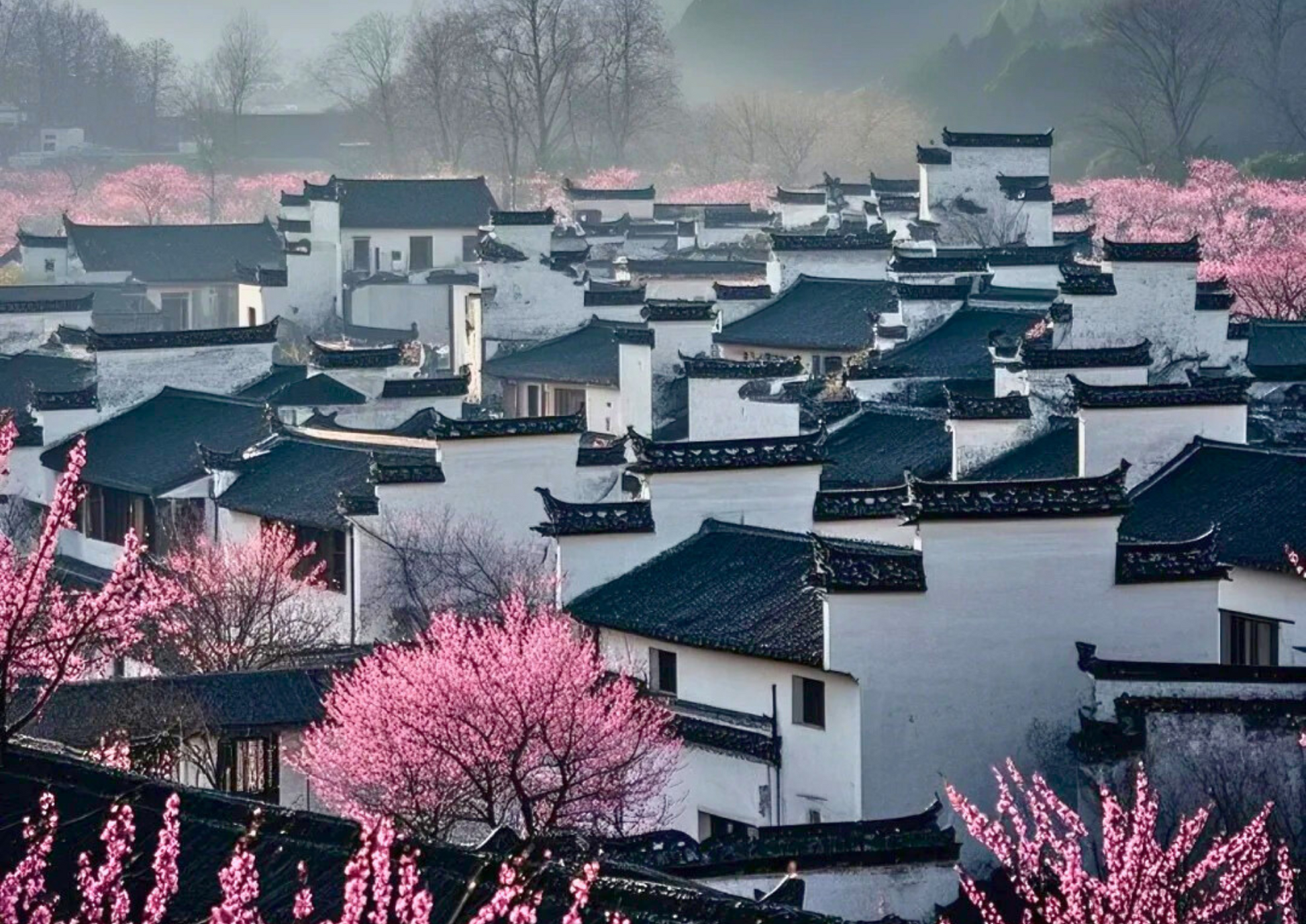 西遞古村は、世界文化遺産に登録された徽派建築の生きた化石です。白壁と黒瓦、精巧な彫刻、石畳の路地が明清時代の商人の栄華を物語り、「桃源郷」のような静けさと詩情を感じられます。