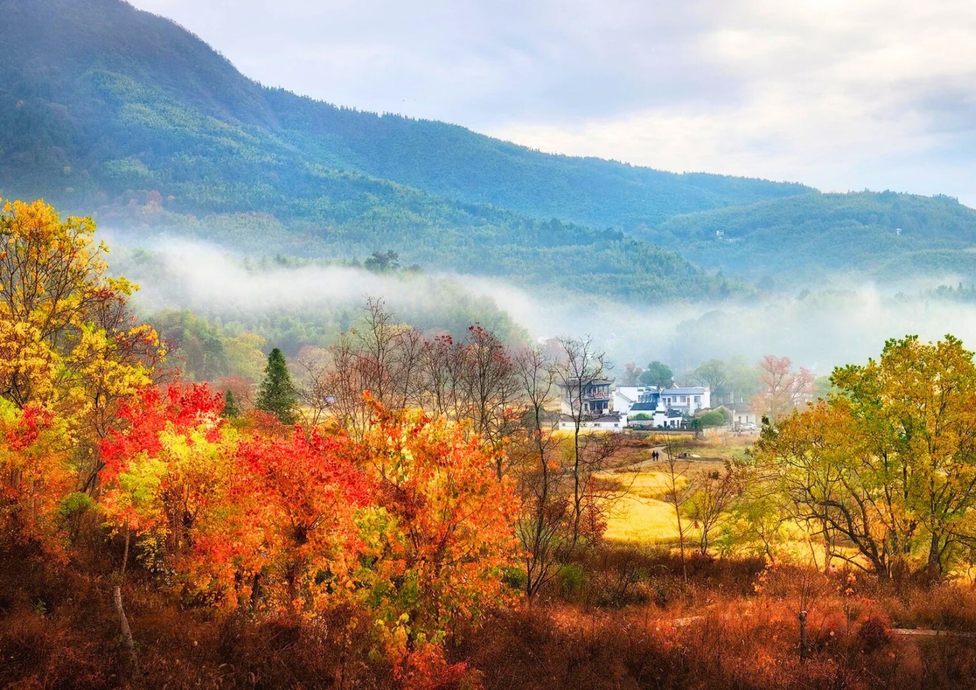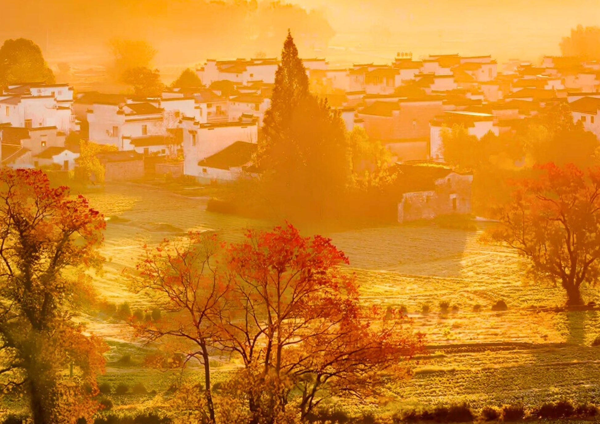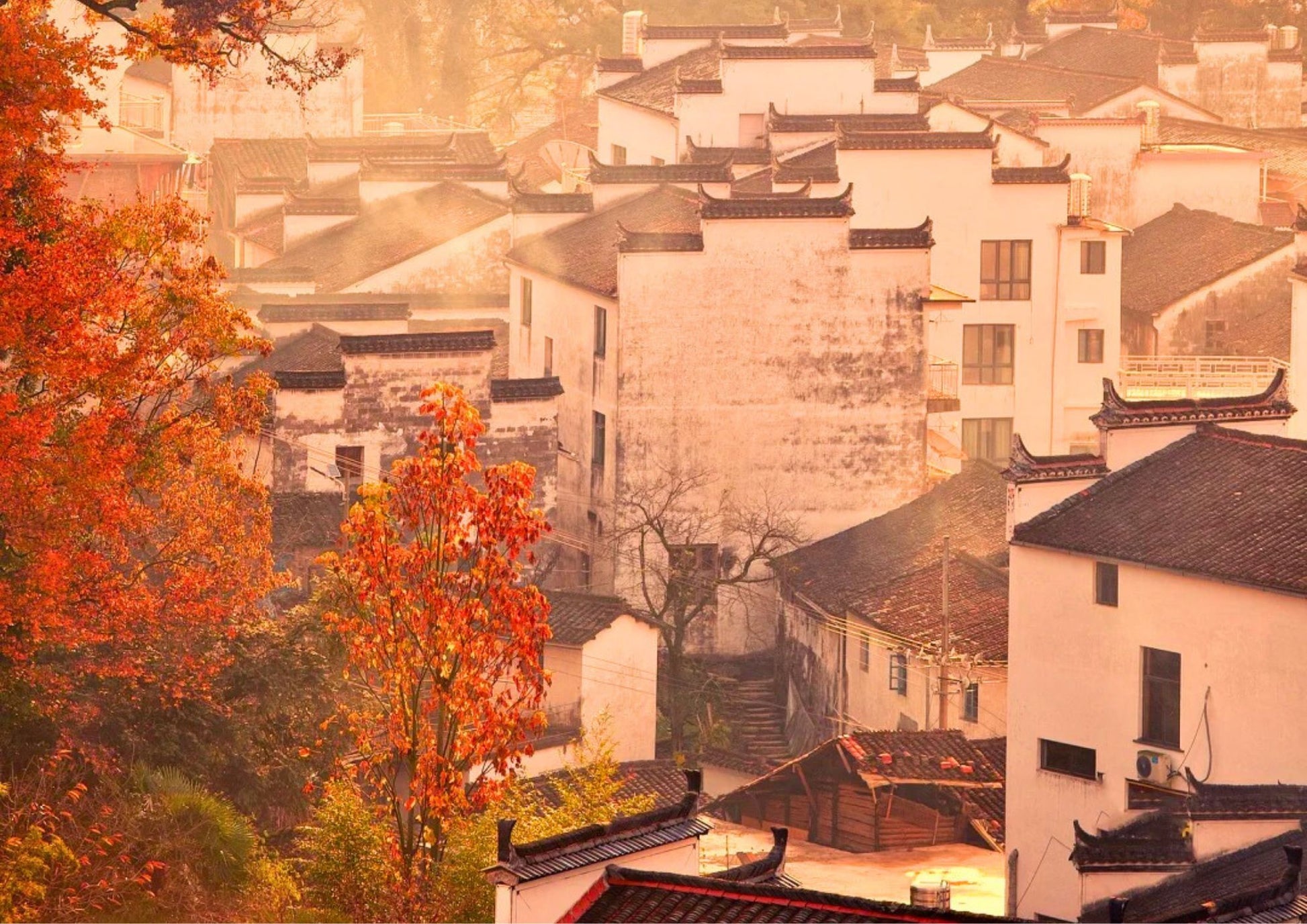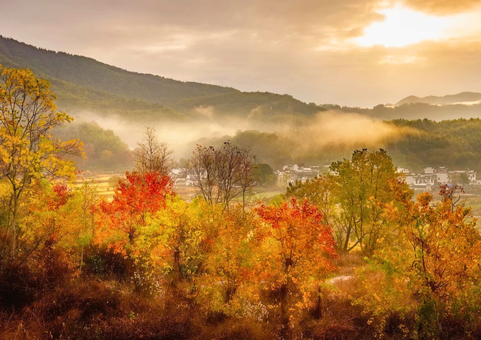 塔川は安徽省黟県に位置し、中国で最も美しい秋の名所の一つです。紅葉に包まれた村は、古風な徽派建築と自然の風景が調和し、写真家の楽園となっています。