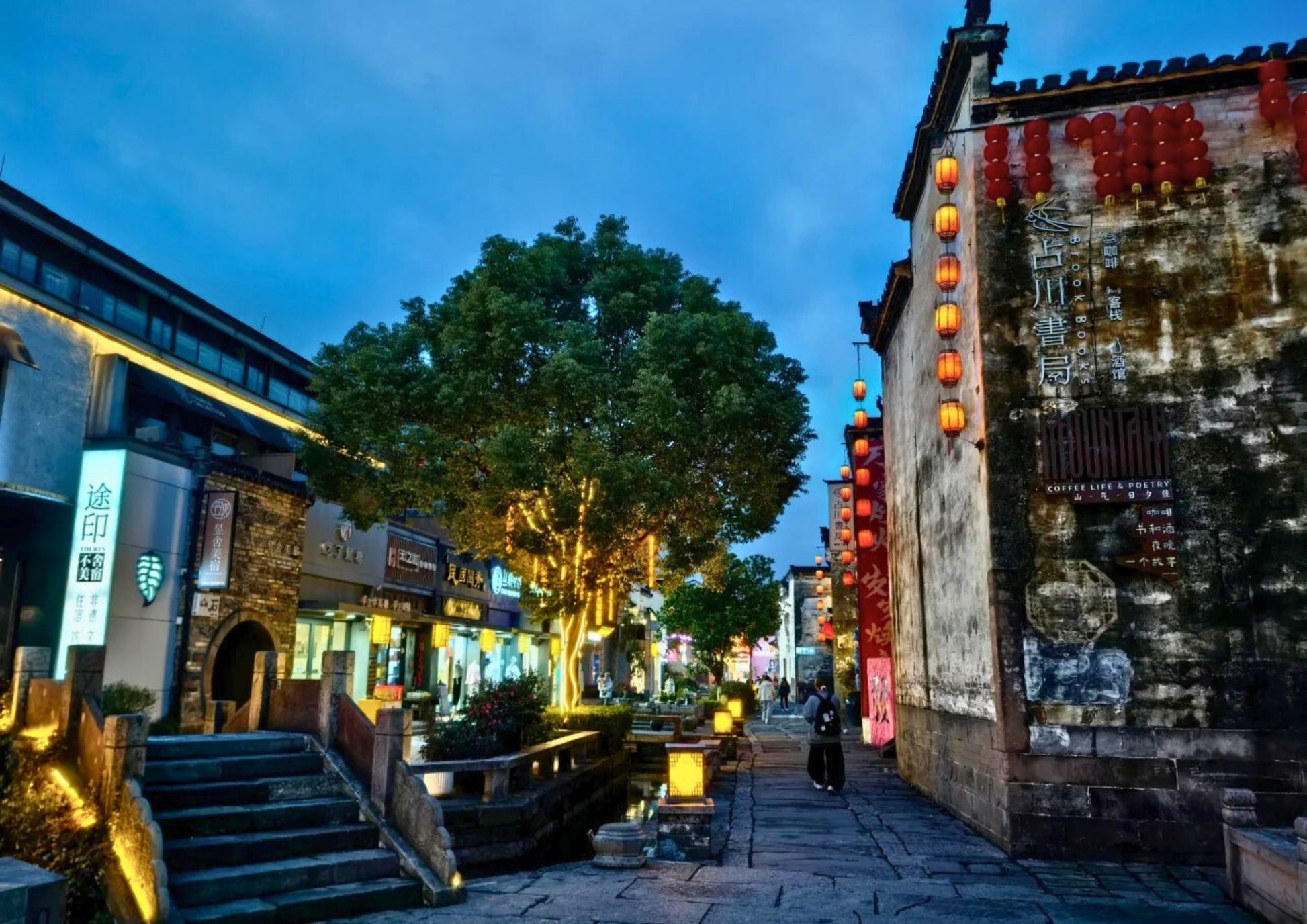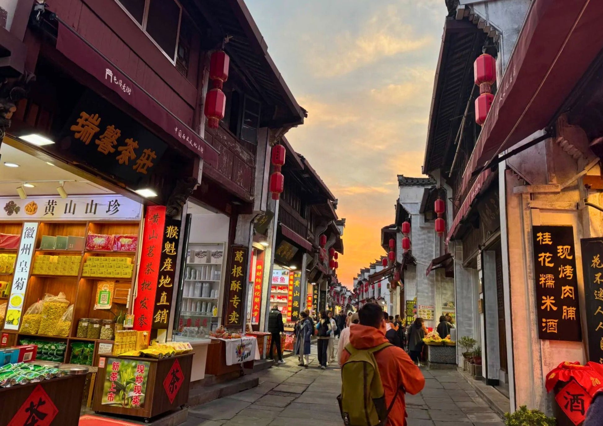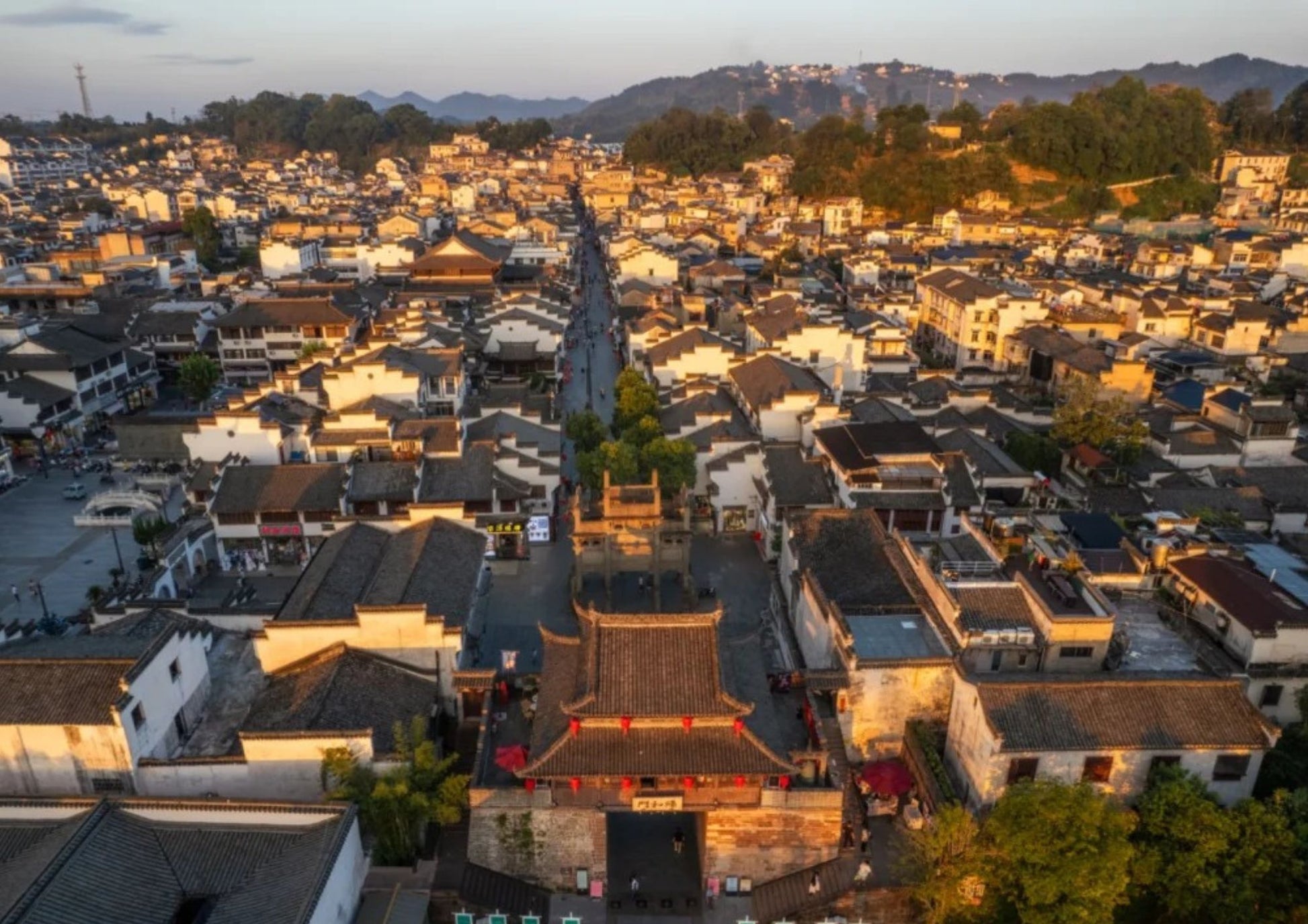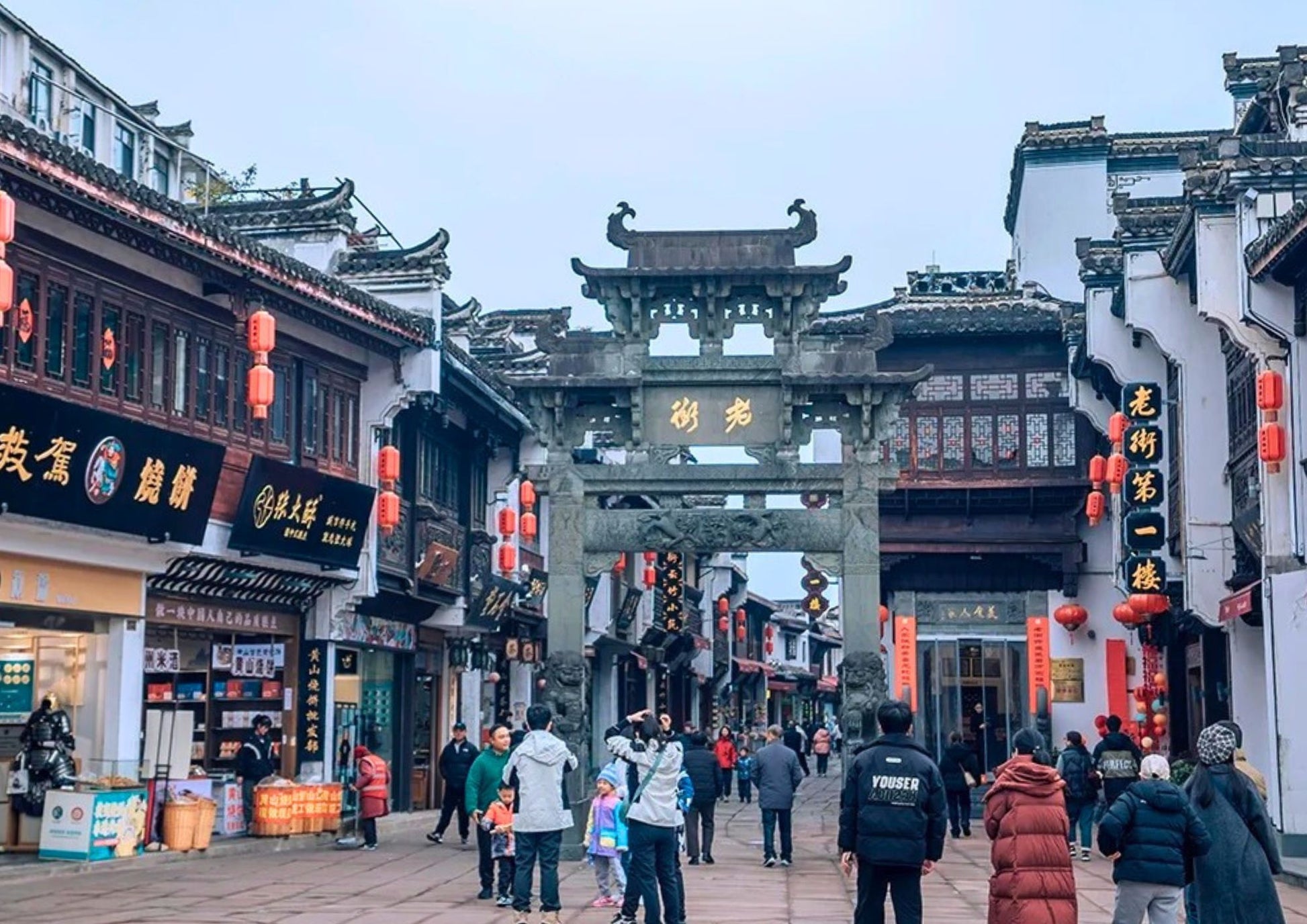 黎陽老街は、屯溪老街と川を挟んで向かい合う、黄山市の新旧融合を象徴するスポットです。文芸ショップ、おしゃれなカフェと伝統的な徽派建築が共存し、夜はライトアップで幻想的。散策や写真撮影に最適です。