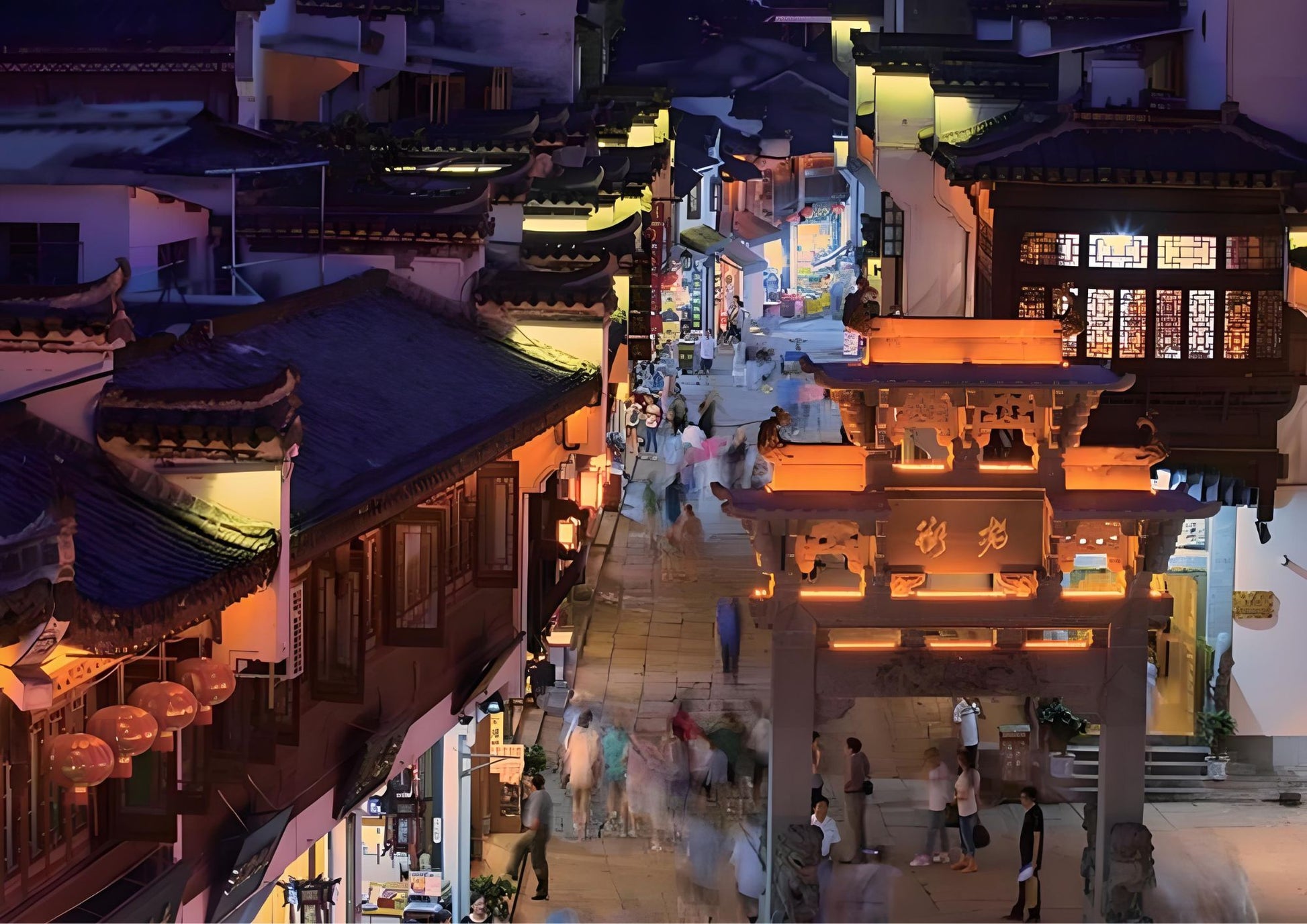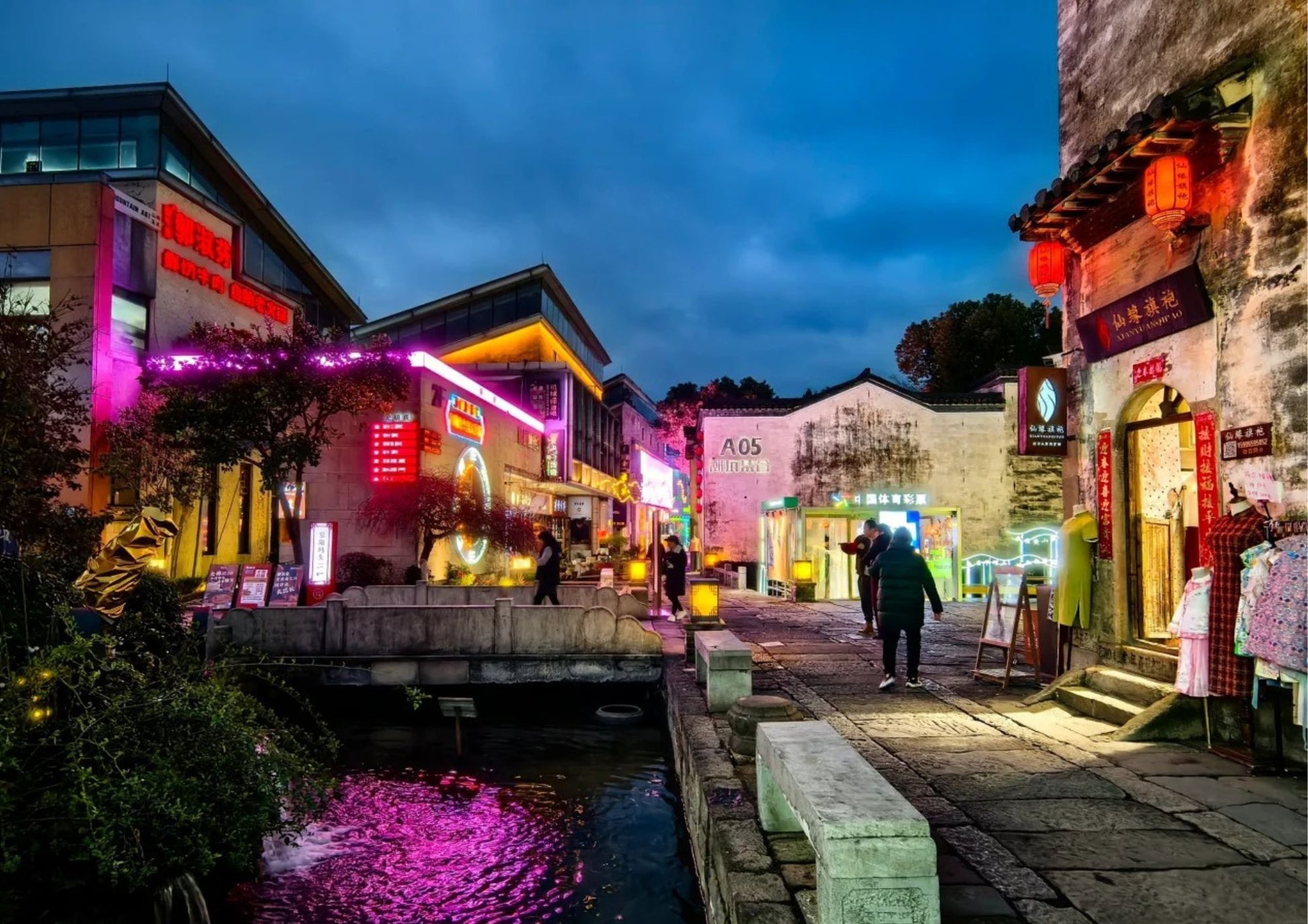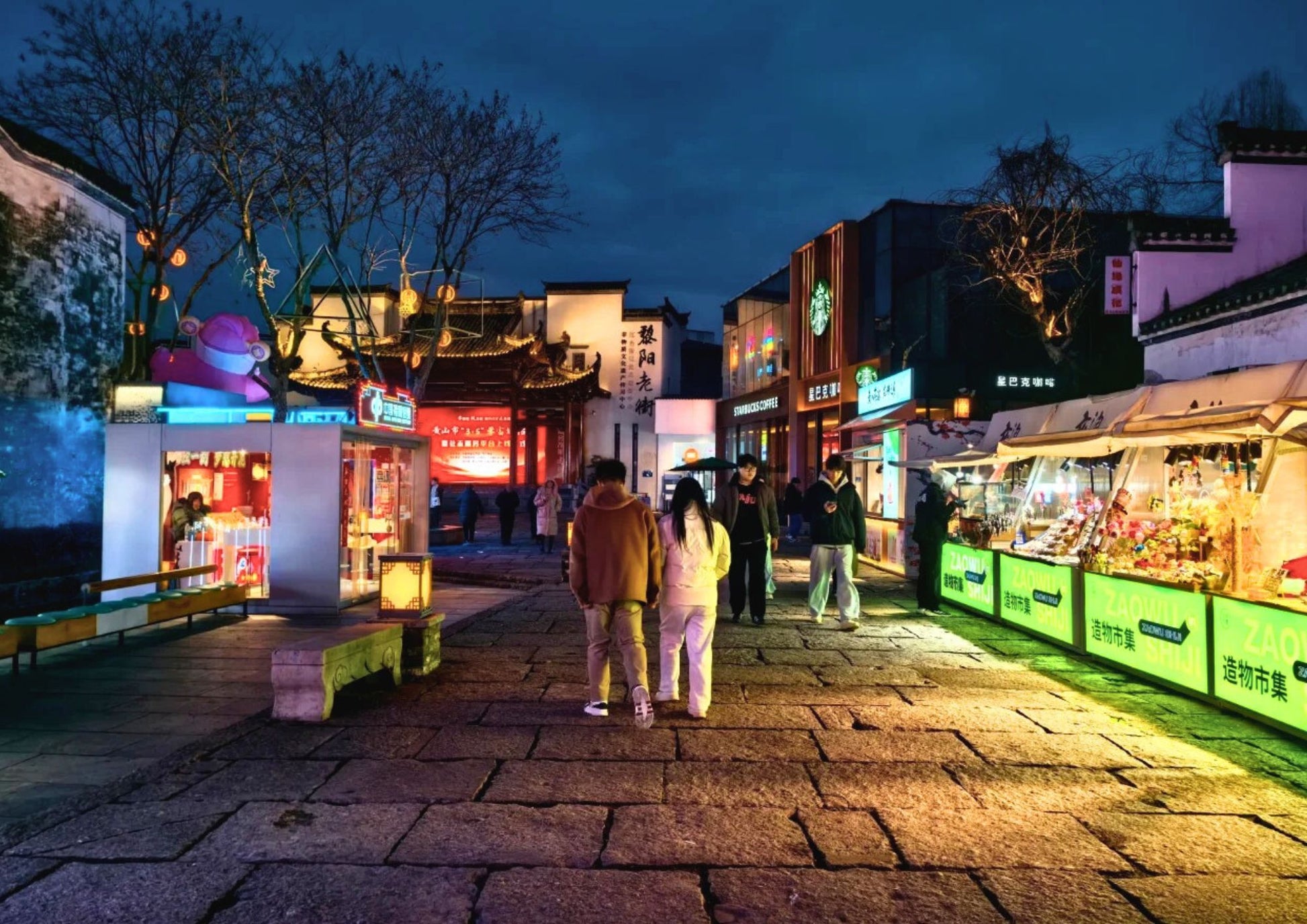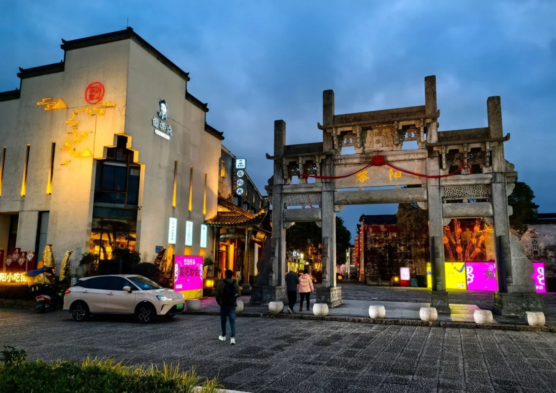 黎陽老街は、屯溪老街と川を挟んで向かい合う、黄山市の新旧融合を象徴するスポットです。文芸ショップ、おしゃれなカフェと伝統的な徽派建築が共存し、夜はライトアップで幻想的。散策や写真撮影に最適です。