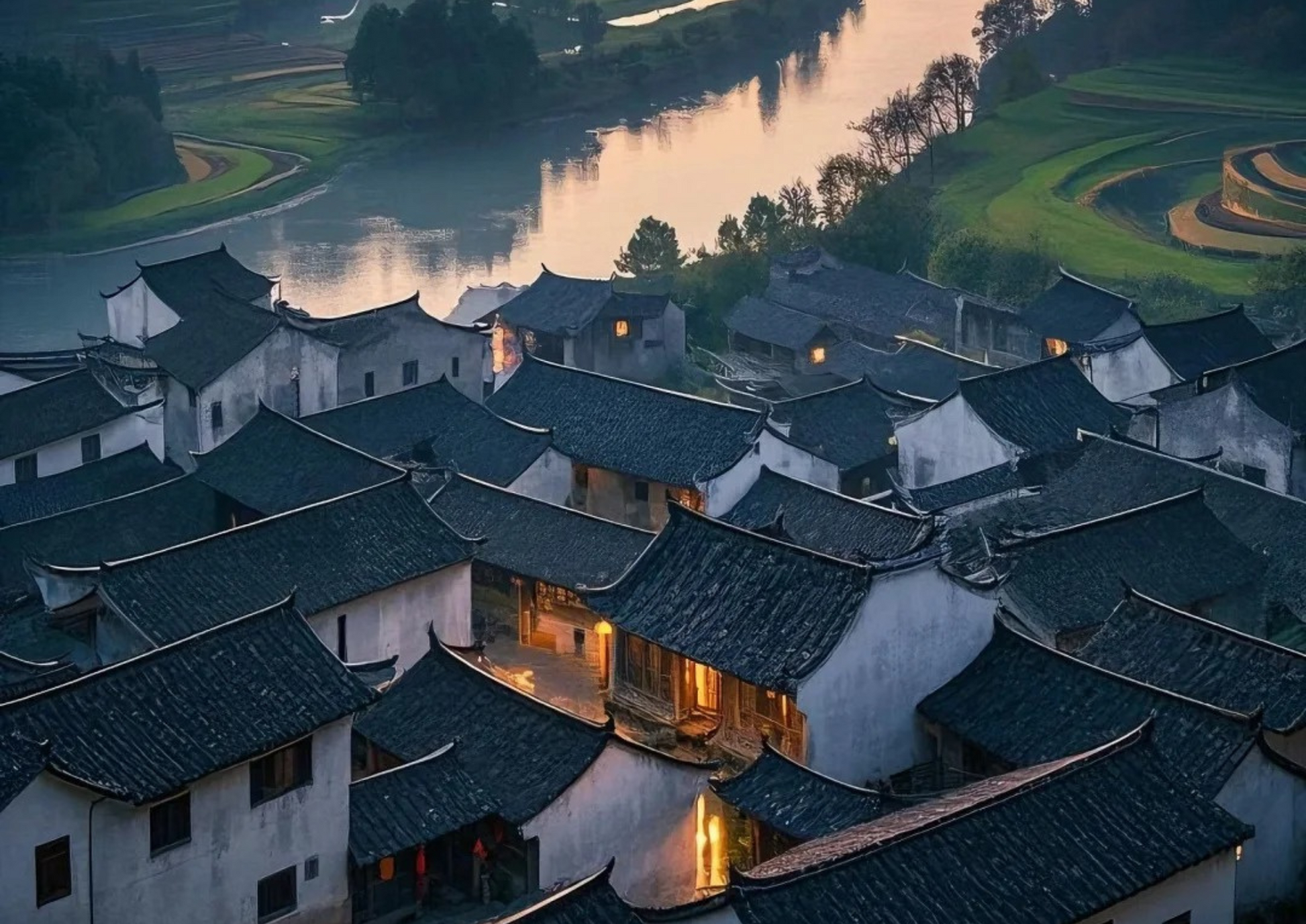 呈坎は「中国風水第一村」と呼ばれ、黄山のふもとに位置する1800年の歴史を持つ村です。八卦の配置、明清時代の古民家、小川の流れが水墨画のような風景を描き出し、自然と人の調和を体感できます。