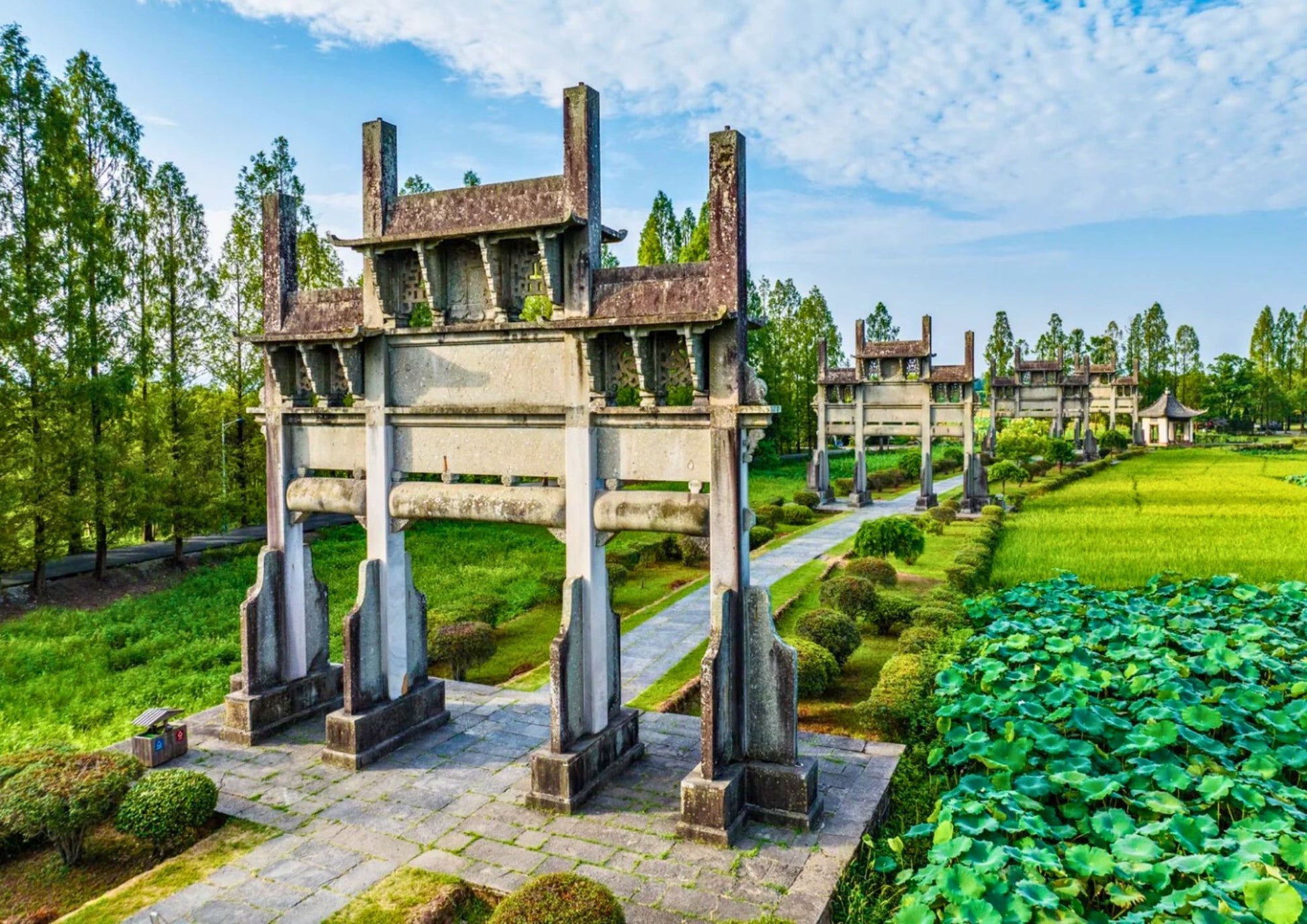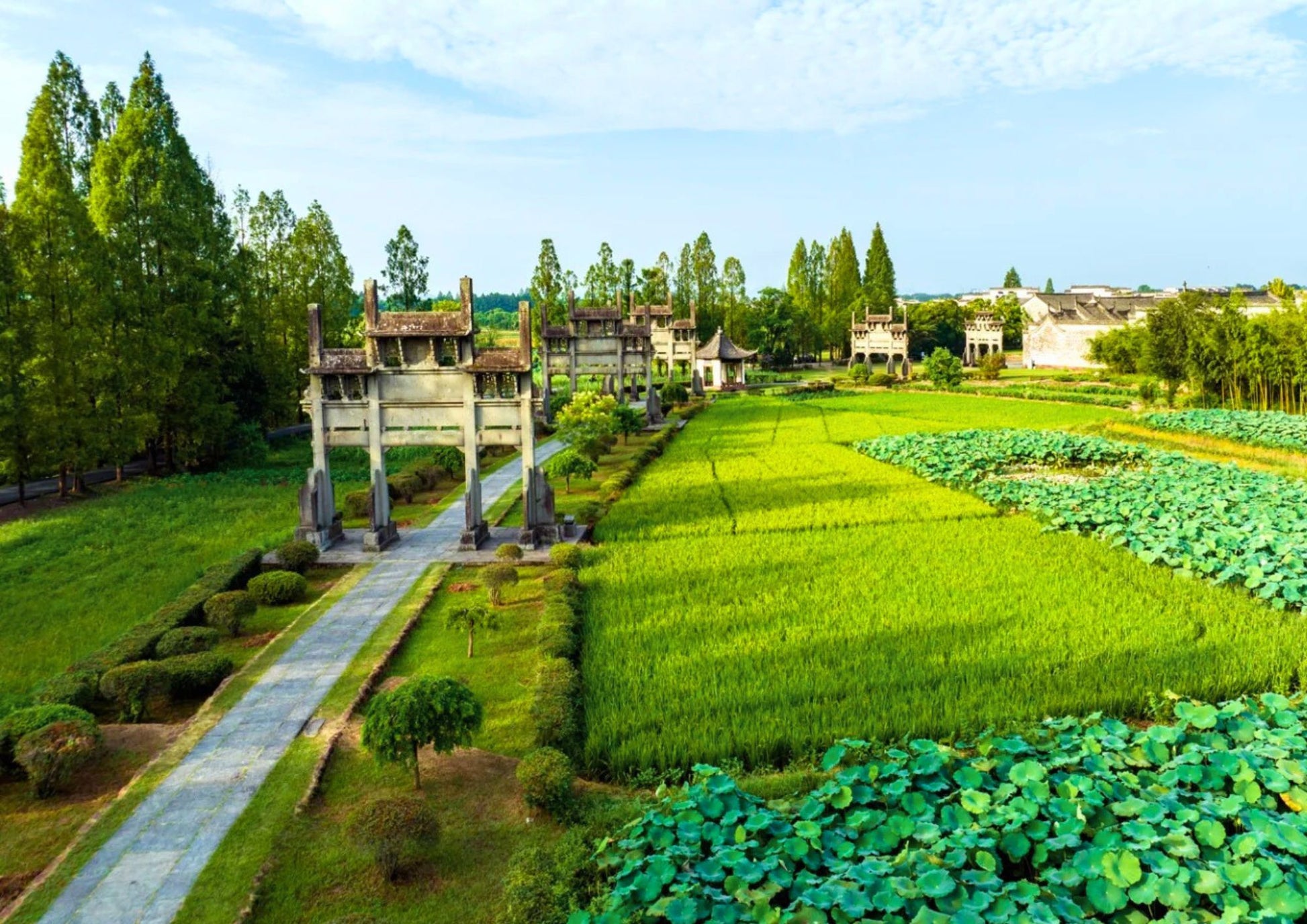 棠樾牌坊群は、安徽省歙県にある中国最大の明清時代の牌坊群です。7つの牌坊が並び、鮑氏一族の忠孝節義を称え、周辺の古村や菜の花畑と共に徽州文化の深みを伝えます。