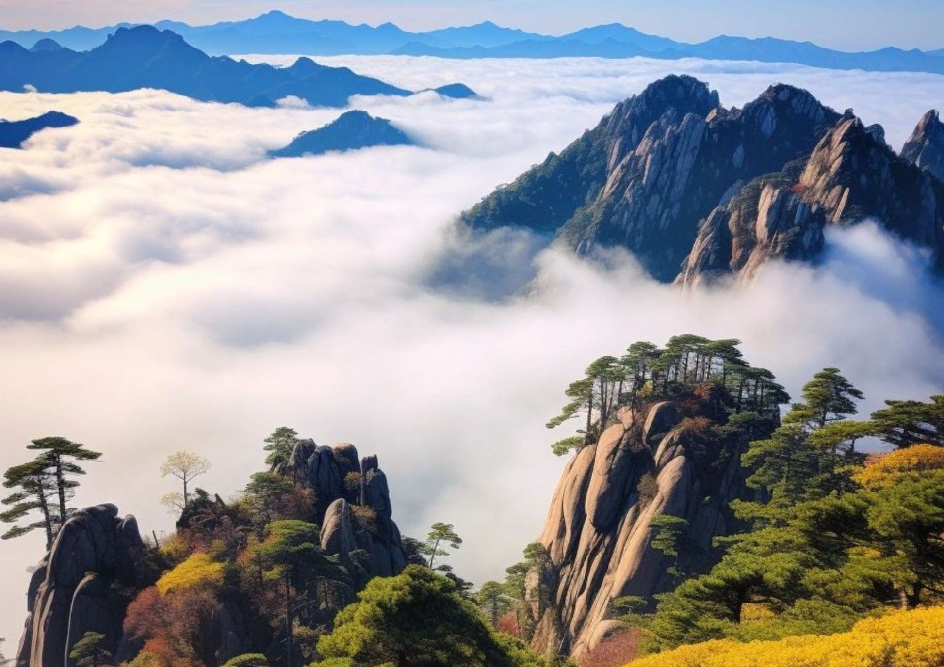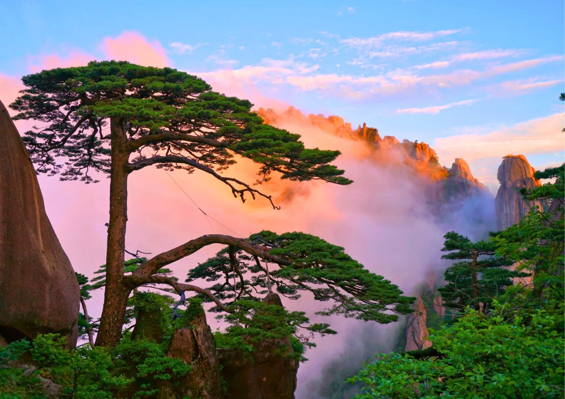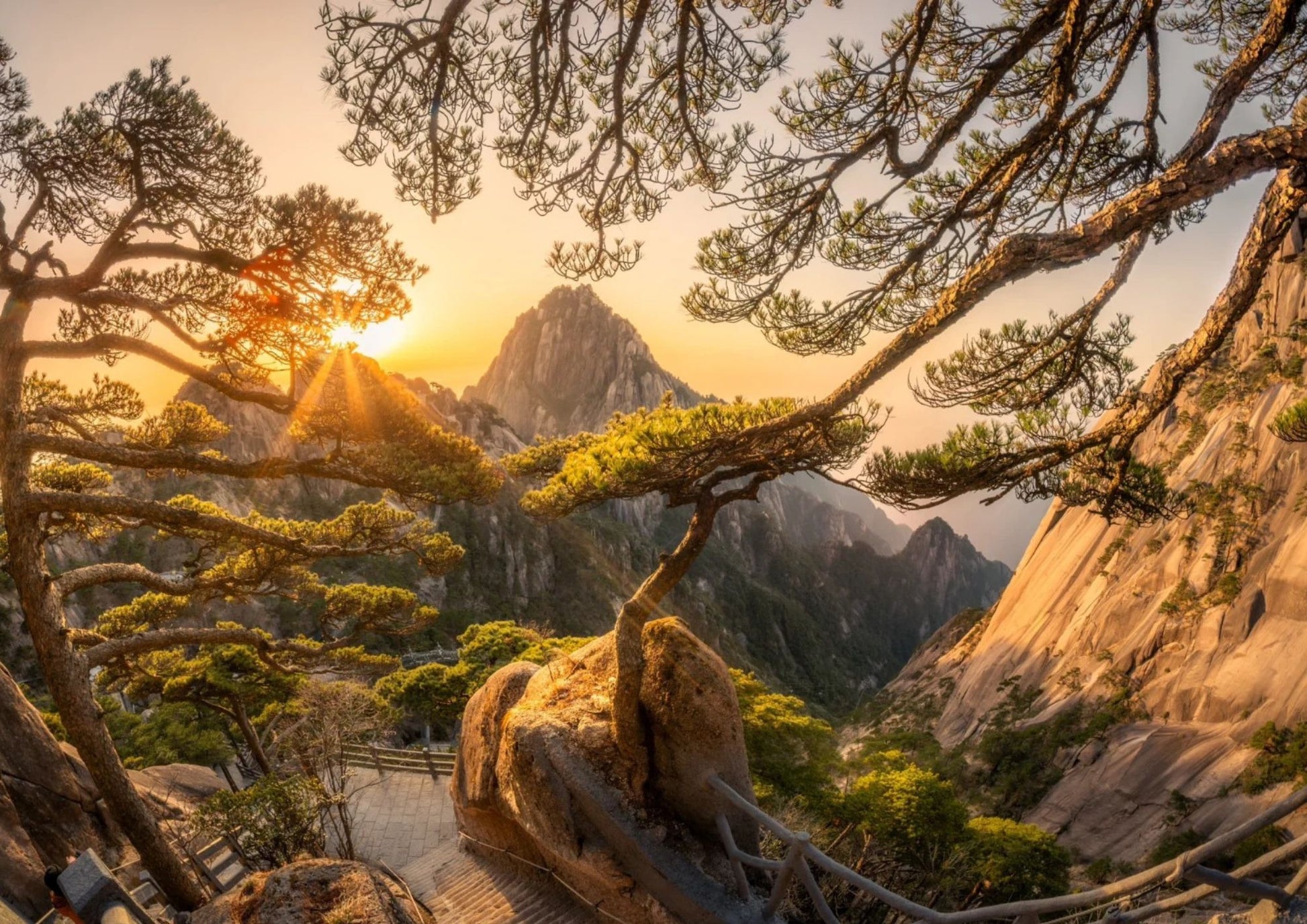 黄山は中国十大名山の一つで、「奇松・怪石・雲海・温泉」の「四絶」で有名です。山頂からは雲海と日の出が楽しめ、古松の間を散策しながら大自然の驚異を体感できます。写真愛好家やハイキング好きの楽園です。