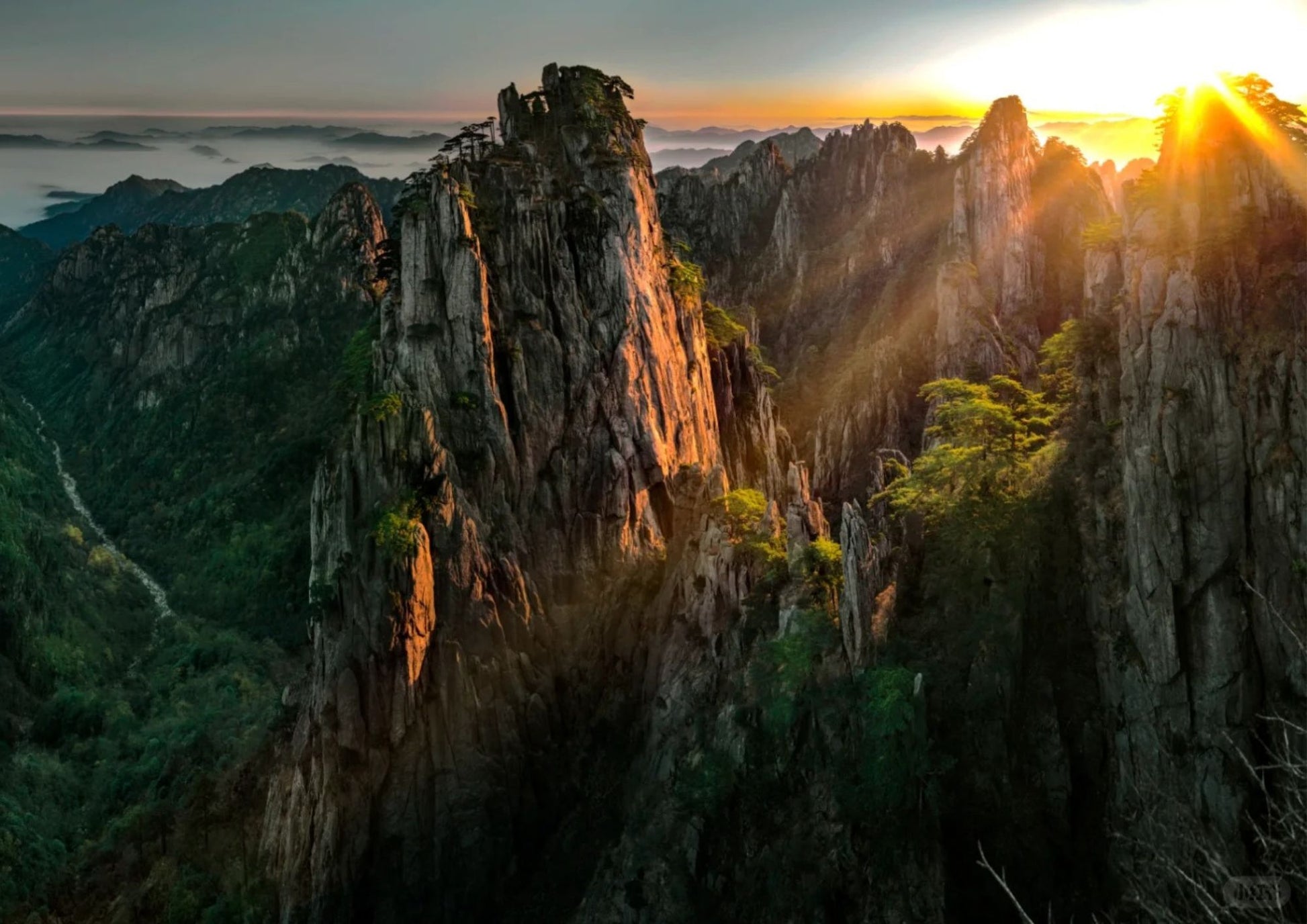 始信峰は中国の黄山風景区内に位置し、奇松、怪石、雲海で知られ、「黄山第一の奇峰」と呼ばれています。頂上からは雄大な山景色が広がり、「始信峰に登らなければ黄山の松を見たとは言えない」という絶景を体感できます。