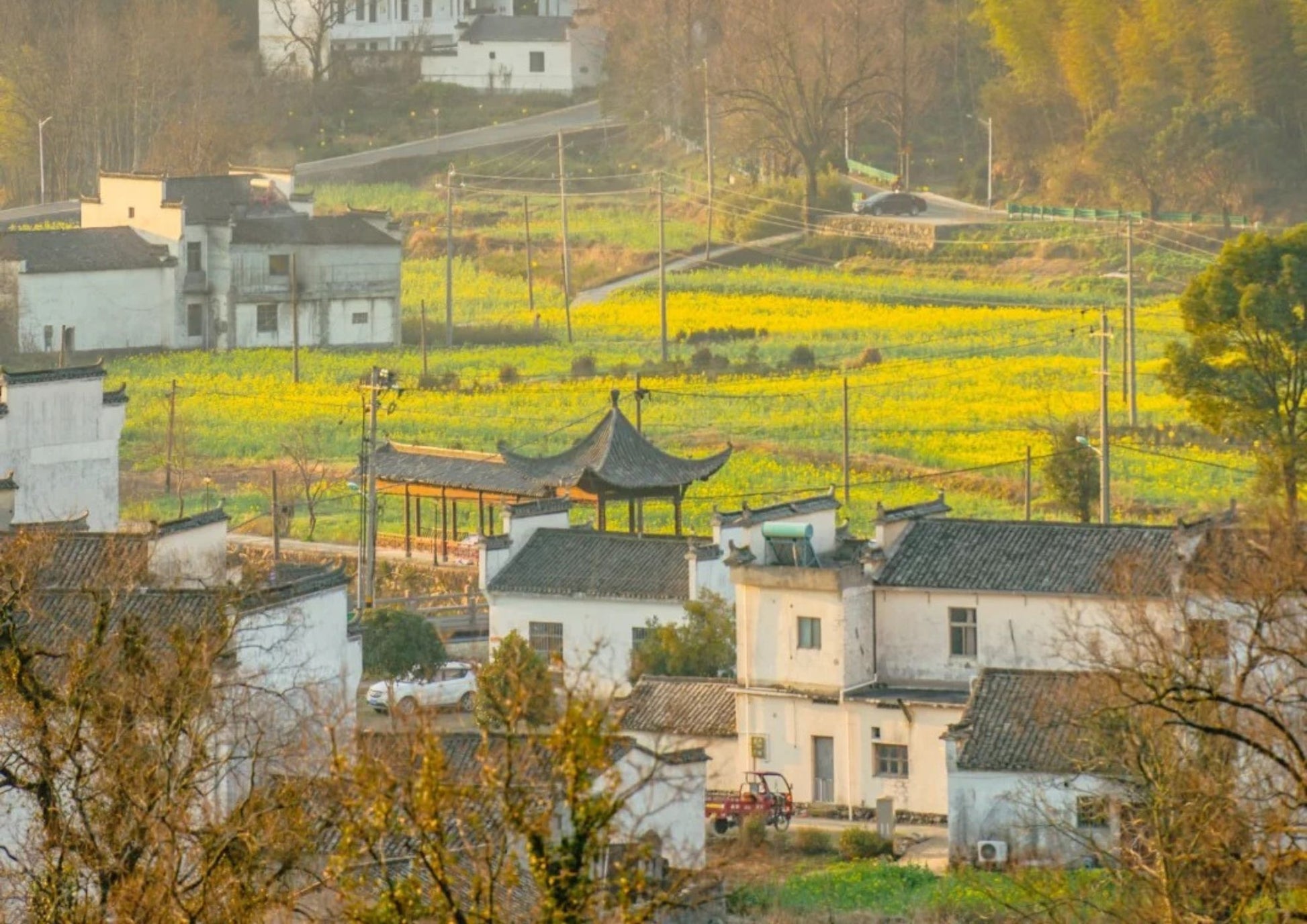 奇墅湖は中国安徽省黟県にある高山湖で、透き通った湖面と周囲の山々が美しい景観を作り出しています。春は菜の花畑、秋は紅葉が楽しめ、写真家の聖地とも呼ばれます。湖畔には古い村も残り、自然と文化が調和しています。