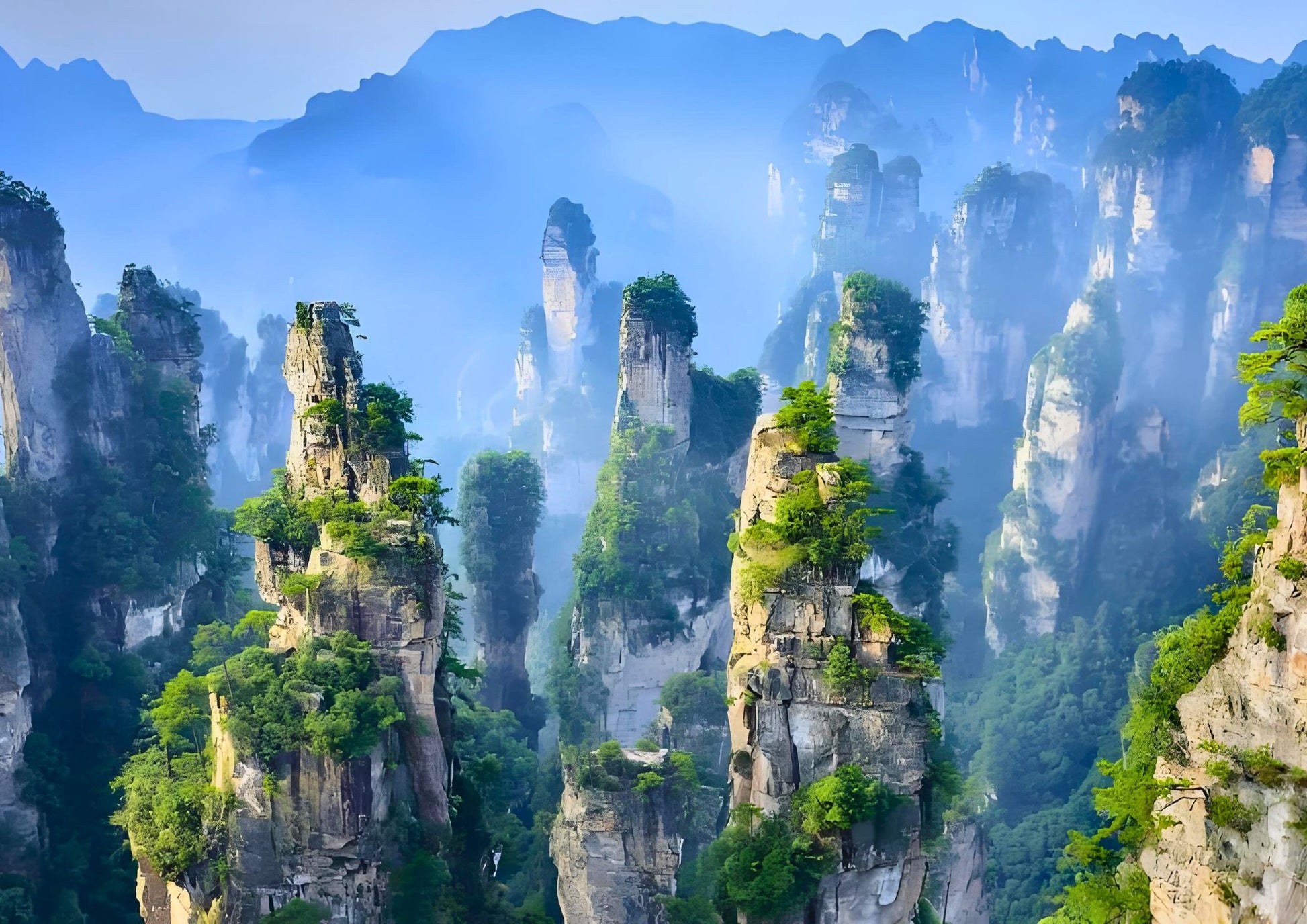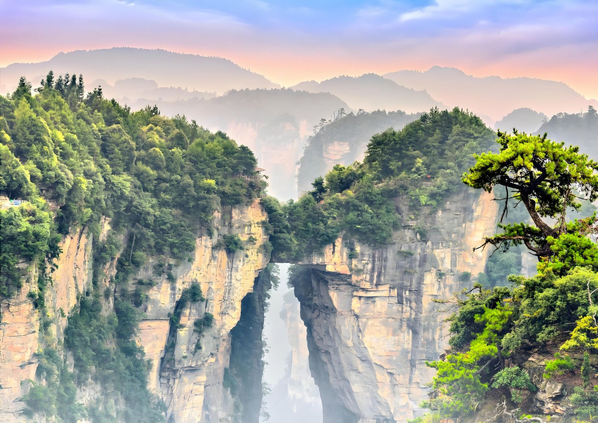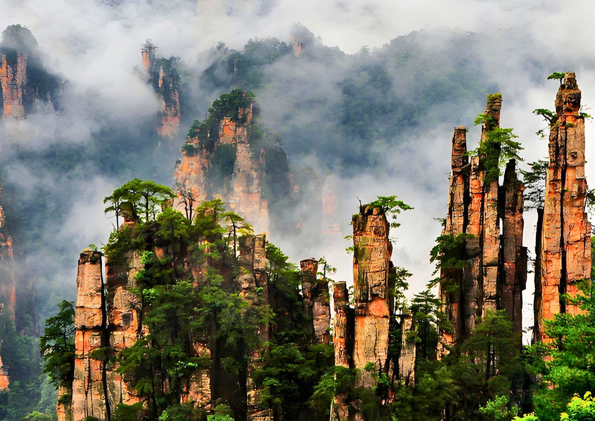 張家界国家森林公園は、霧に包まれた仙境のような三千の奇岩で有名。『アバター』のロケ地となった絶景を散策し、大自然の驚異を体感できます。