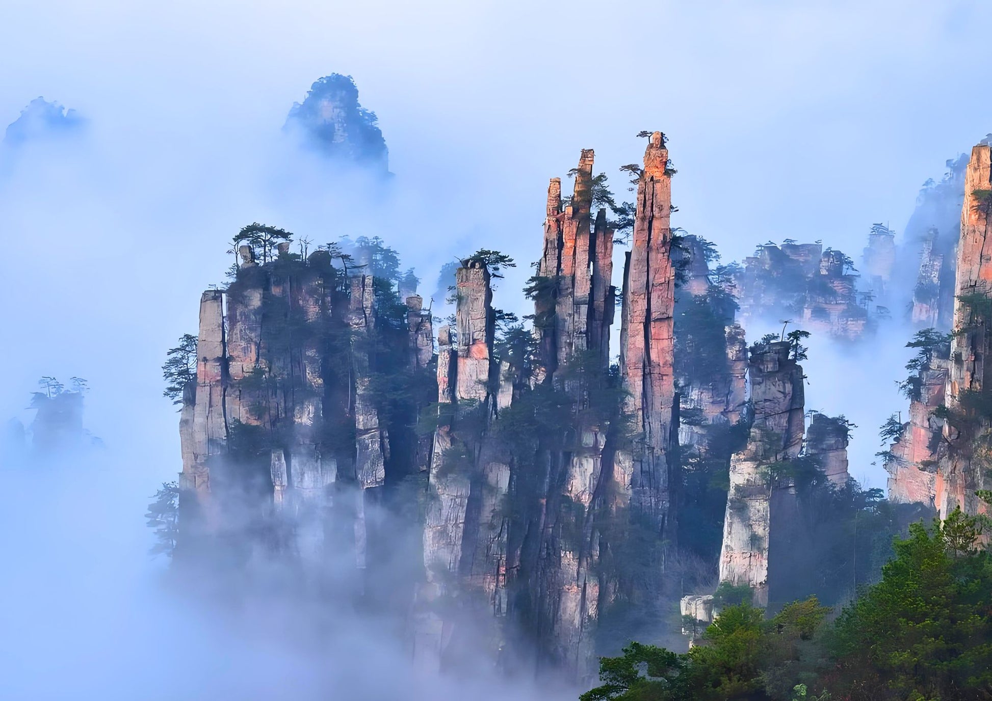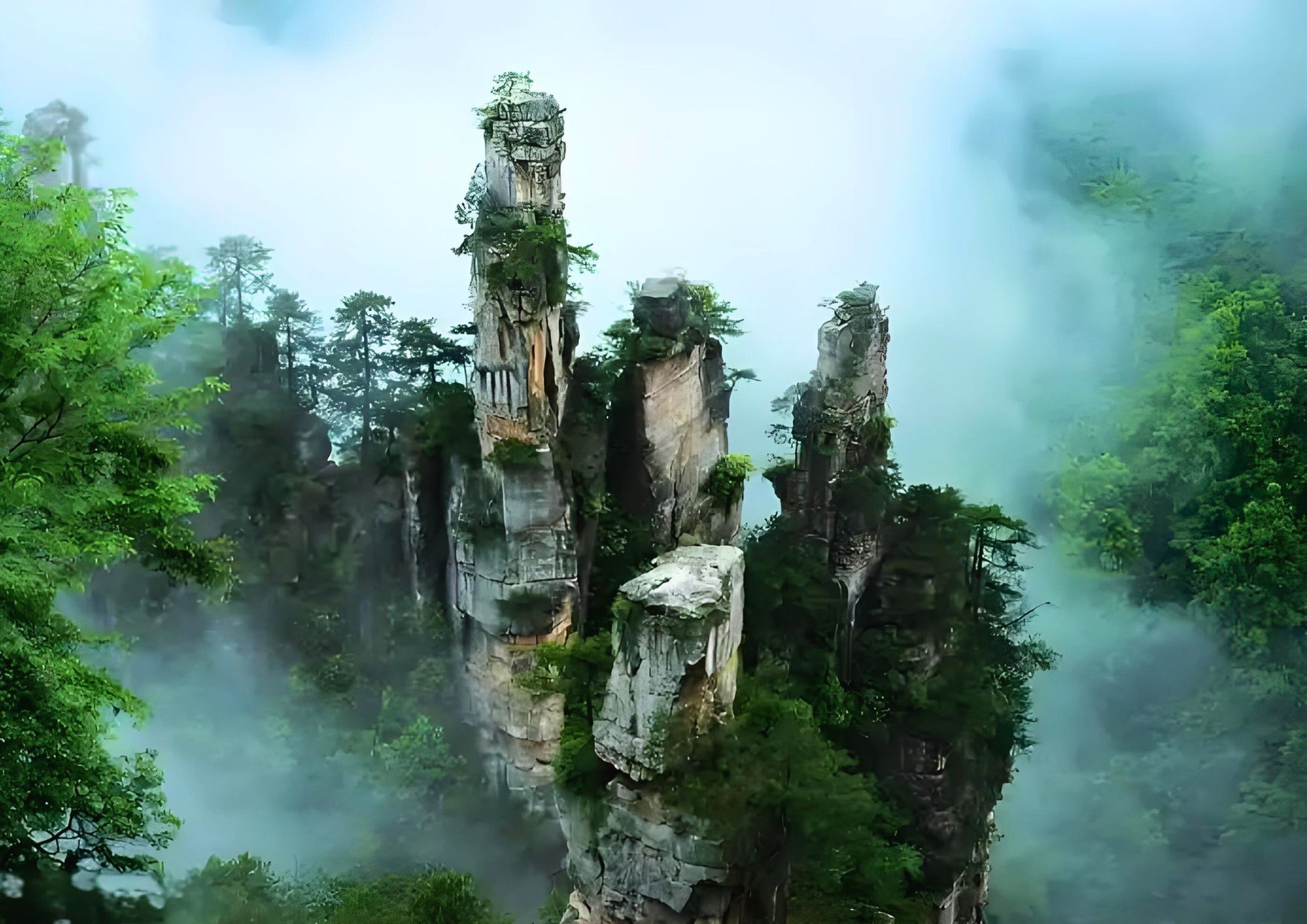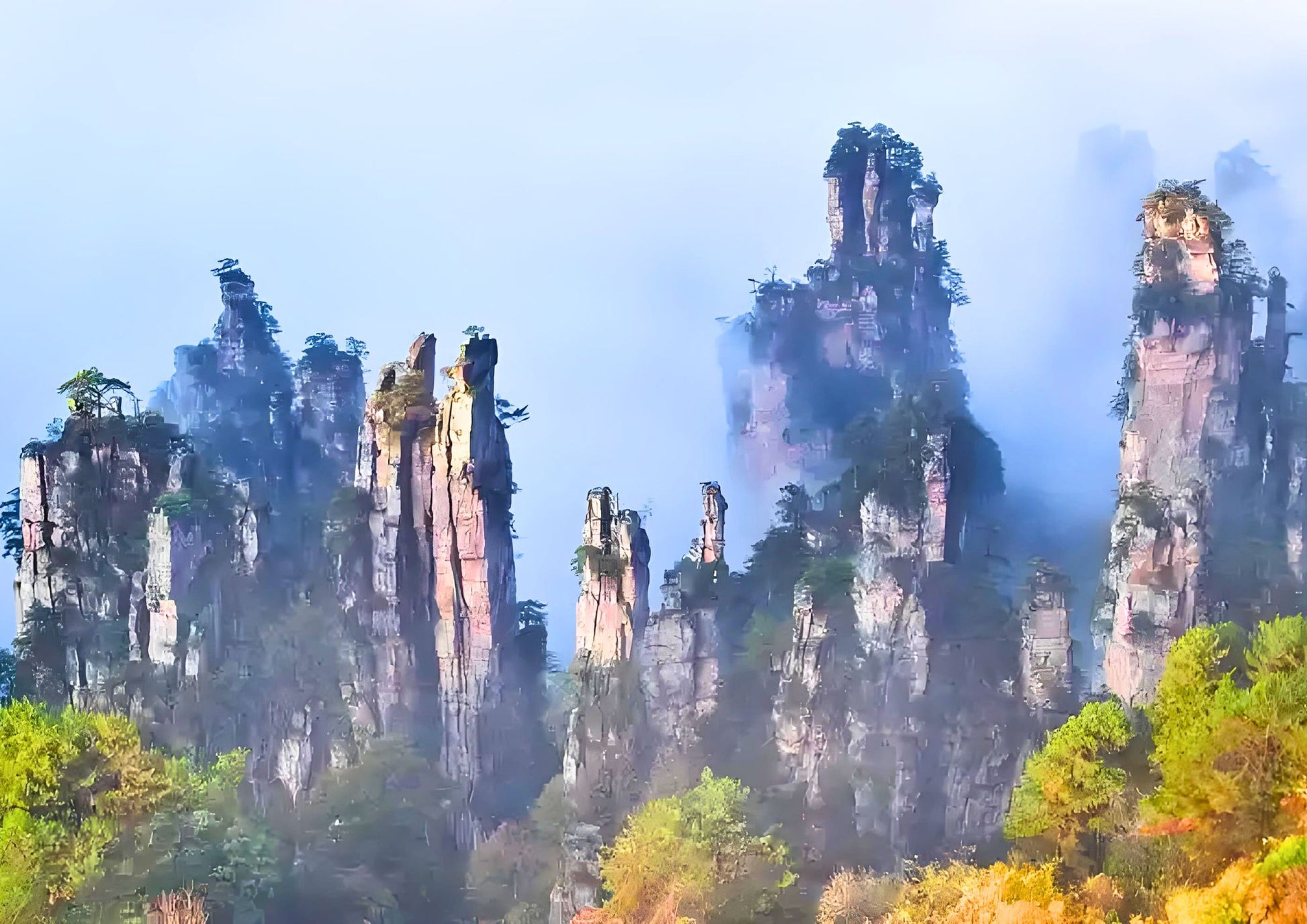 張家界国家森林公園は、霧に包まれた仙境のような三千の奇岩で有名。『アバター』のロケ地となった絶景を散策し、大自然の驚異を体感できます。