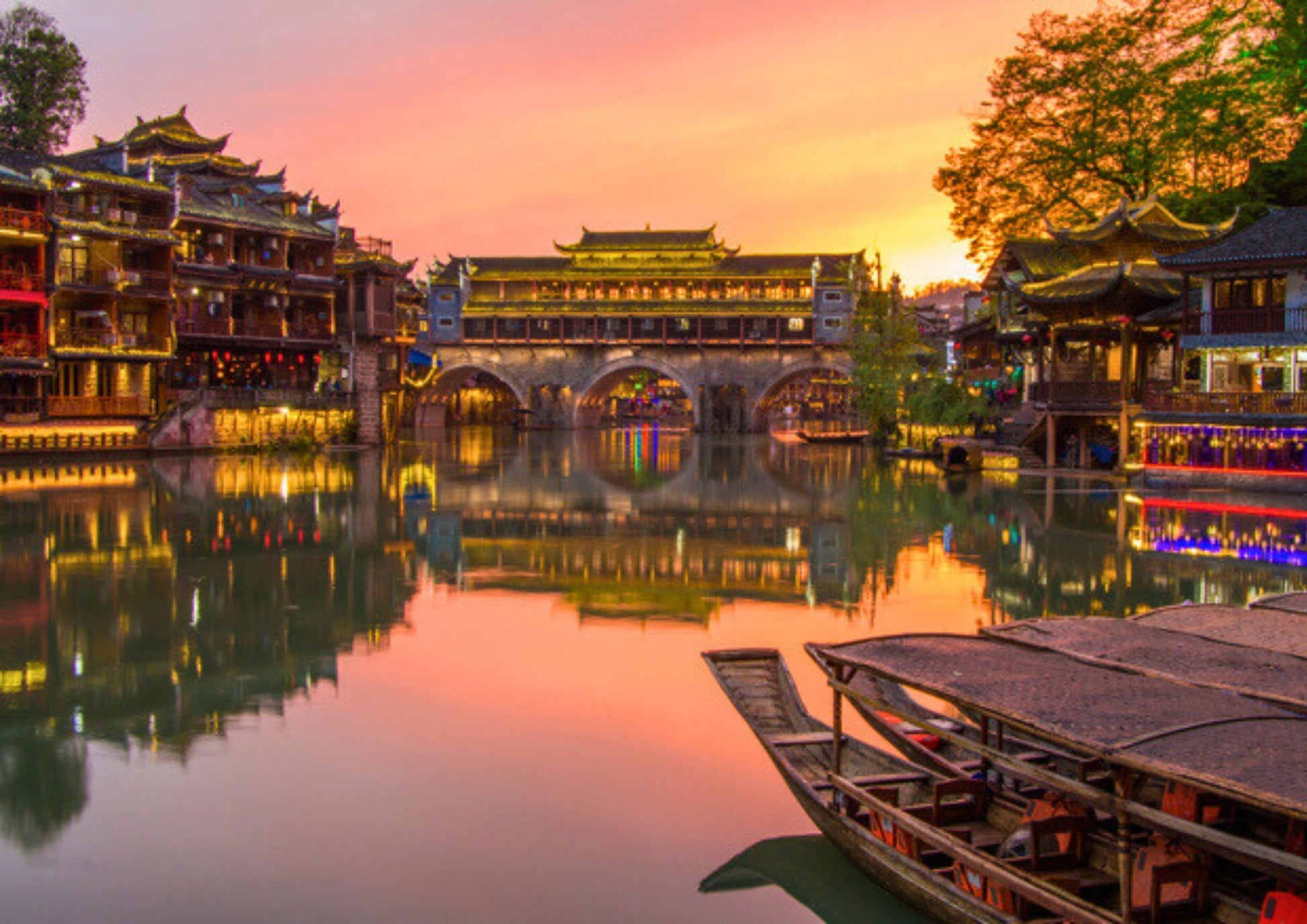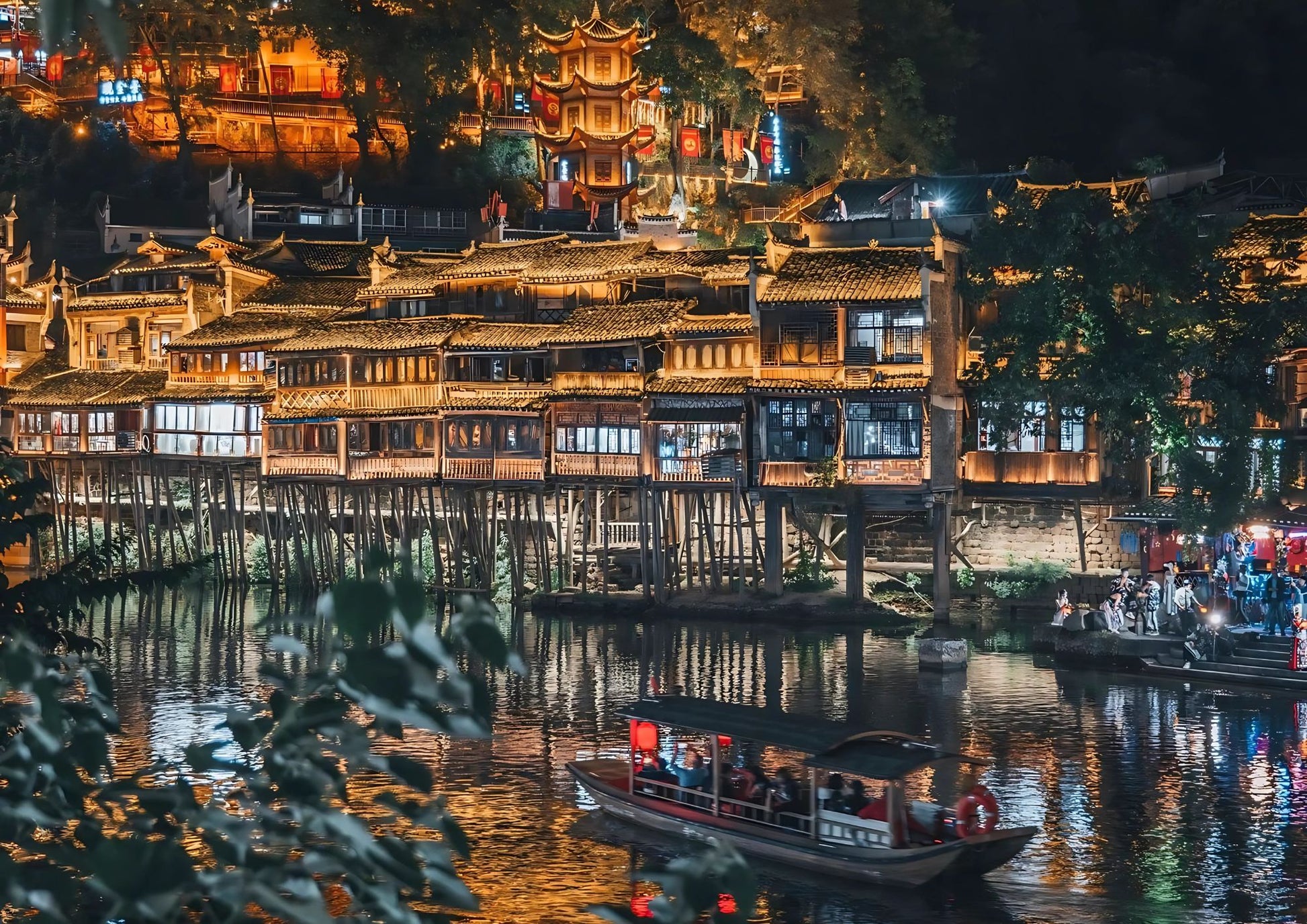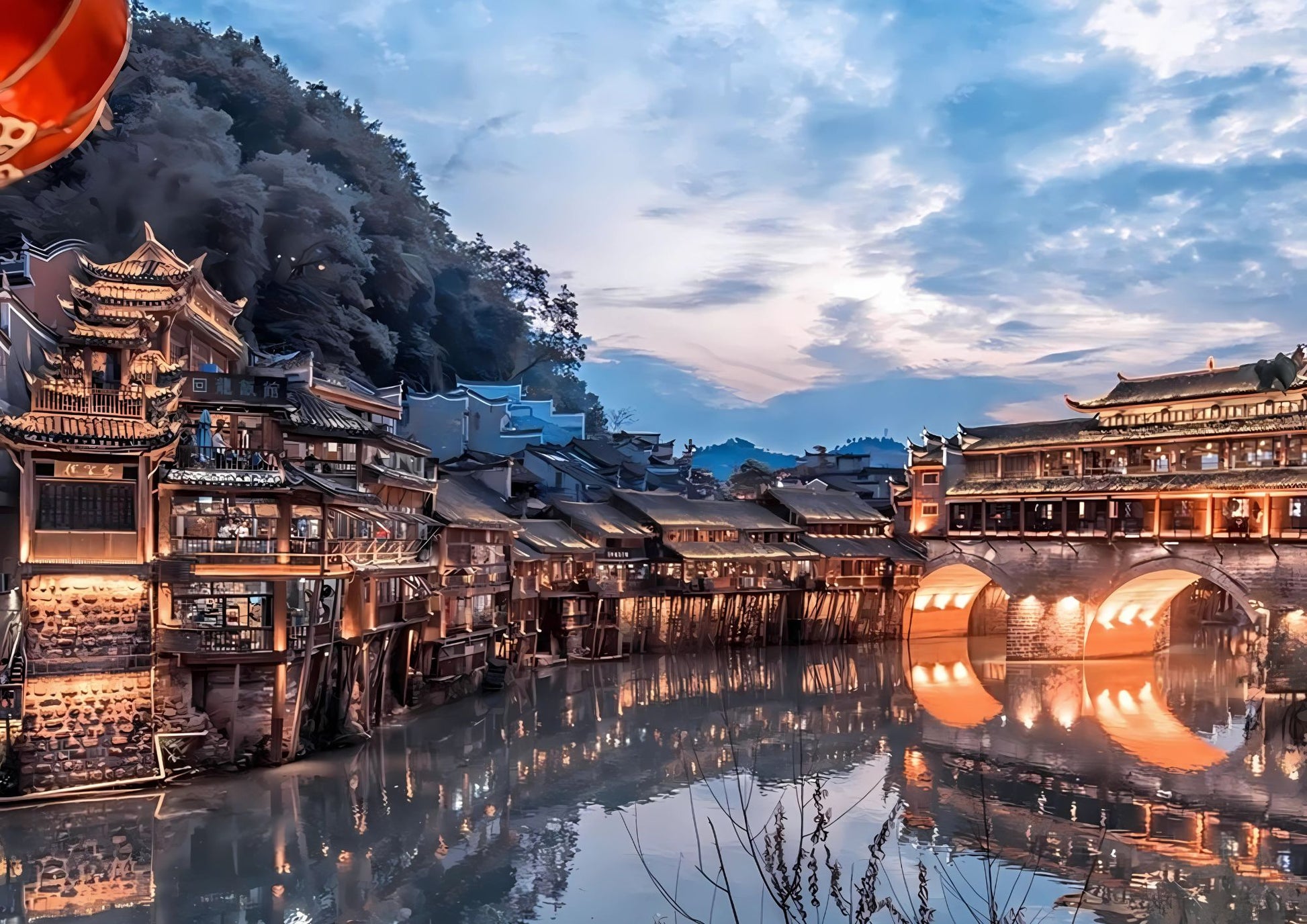 鳳凰古城は湘西の千年の古都。沱江が流れ、川沿いに高床式家屋が並びます。石畳の路地を歩けば、沈従文の小説のような風情を感じられ、夜には提灯が幻想的な世界を創り出します。
