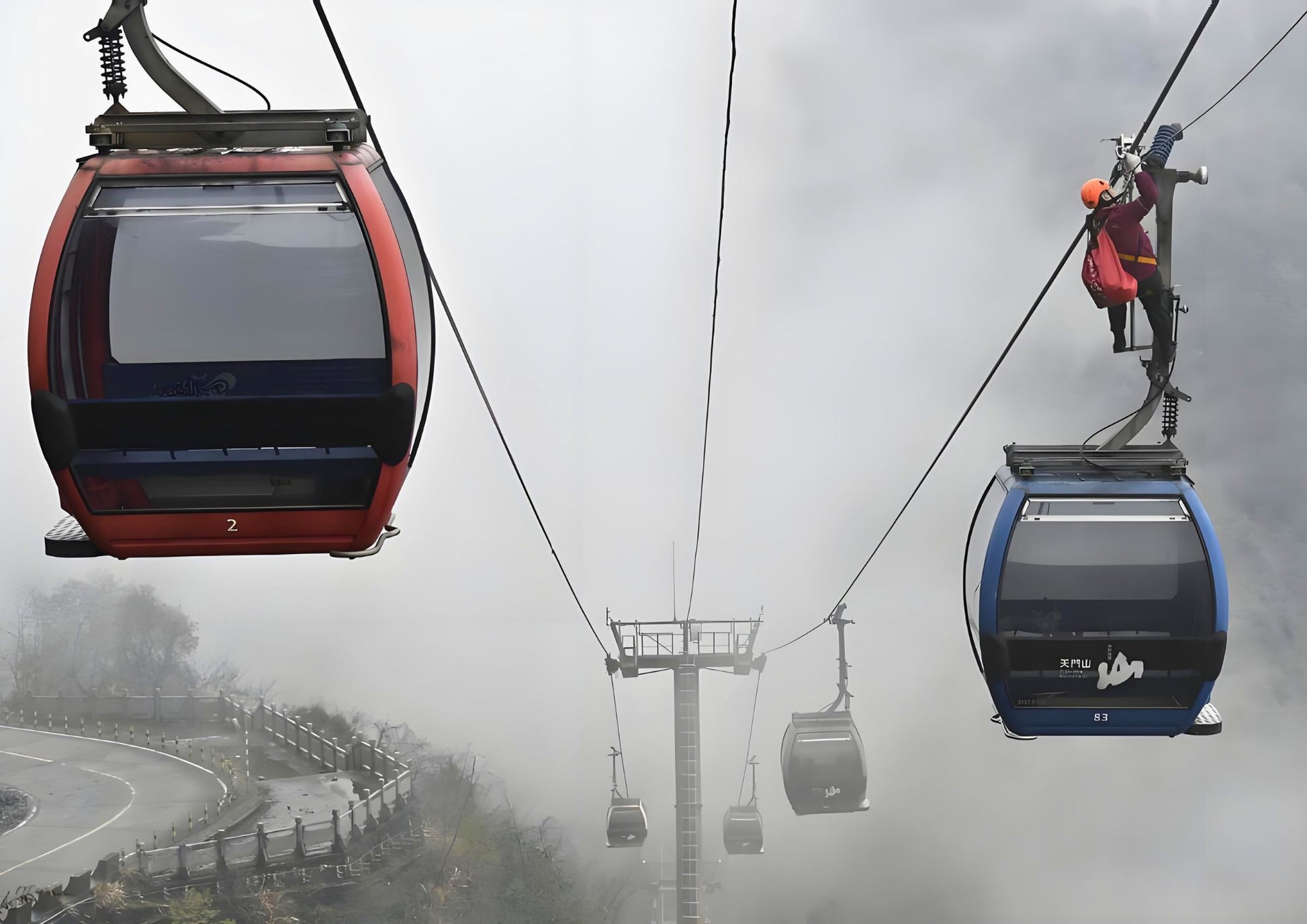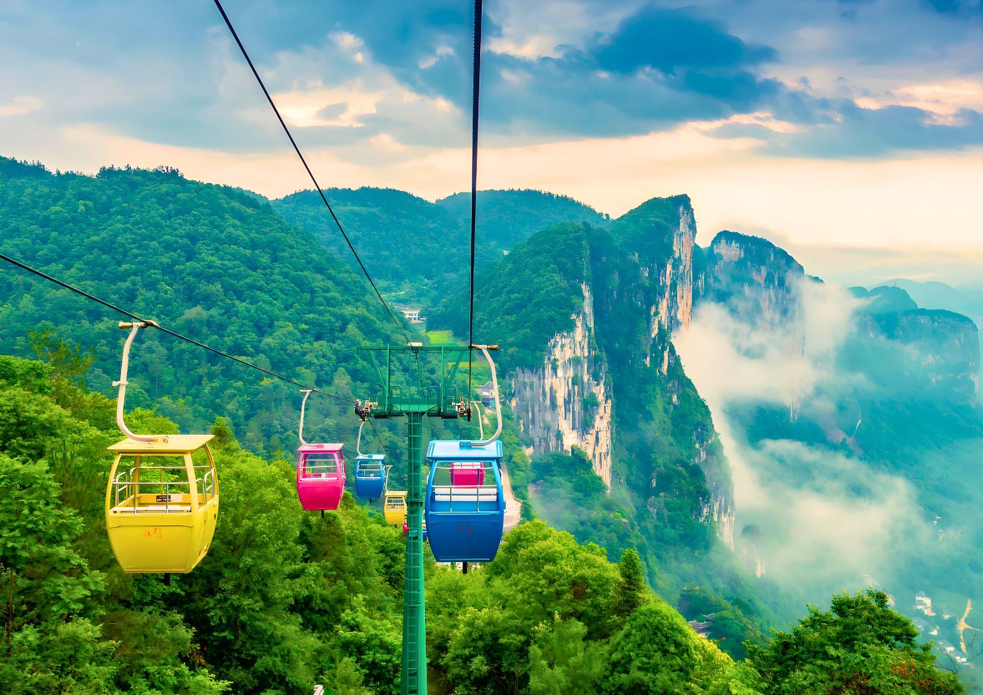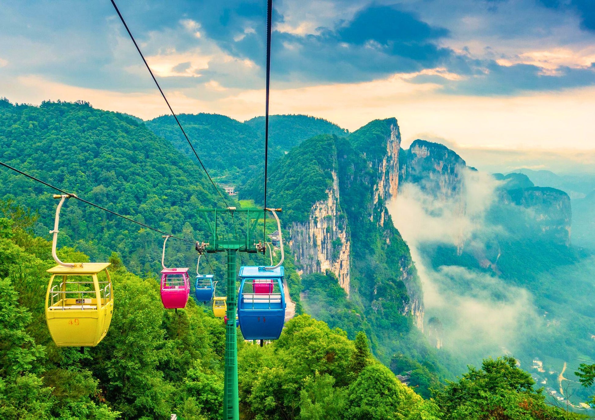 天門山ロープウェイは全長7.5キロで、世界最長の単線循環式です。街から山頂まで一気に登り、峡谷や雲海の絶景を楽しめます。スリル満点の体験です!