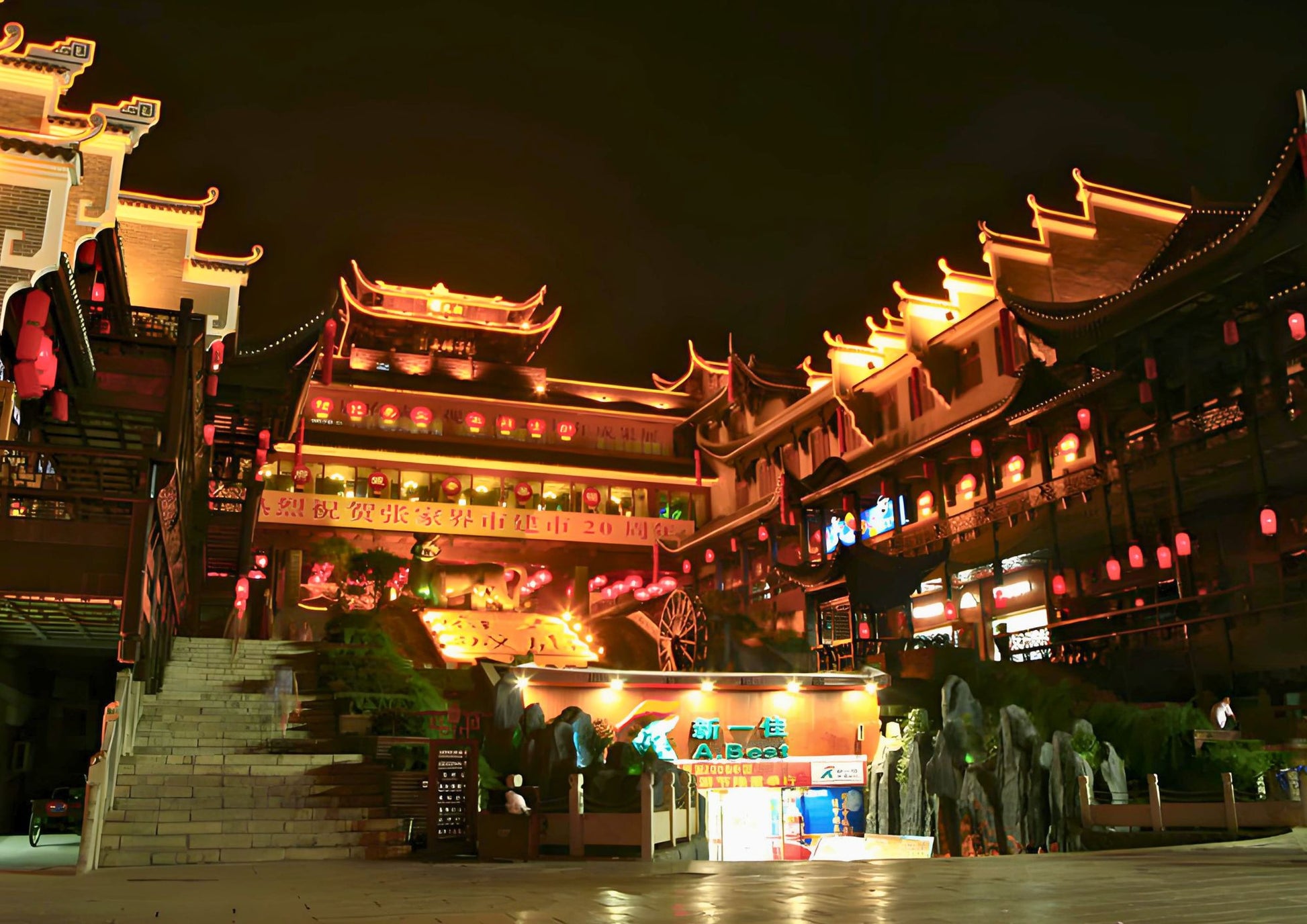 大庸古城は湖南省張家界に位置し、土家族の文化と現代の魅力が融合した歴史的な町です。石畳の道を散策し、山水と調和した古風な建築を楽しみ、夜はきらめくライトアップが幻想的な雰囲気を醸し出します。
