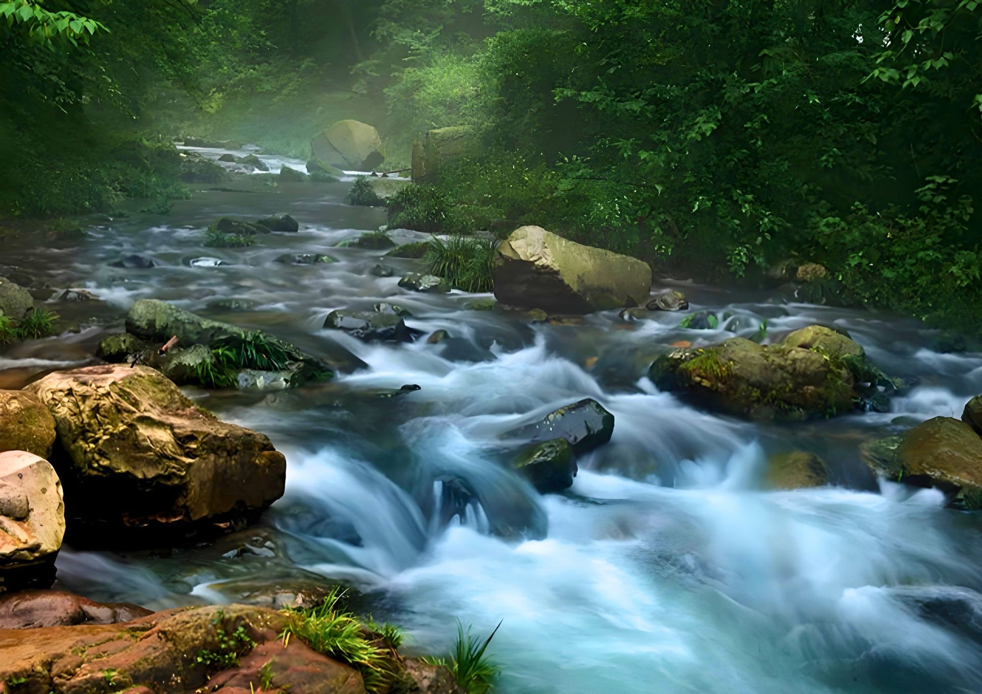 張家界の金鞭渓は「山水画の回廊」と呼ばれ、透き通った渓流と緑に囲まれた奇岩が広がります。散策しながら、せせらぎと鳥の声に包まれる自然の癒しを体感できます。