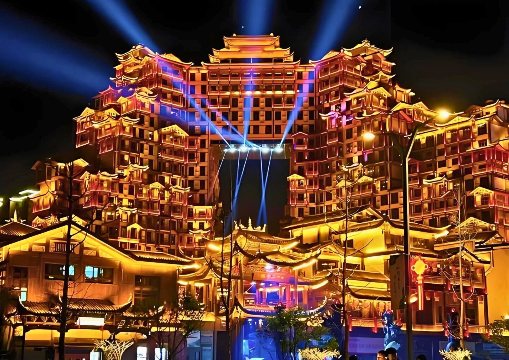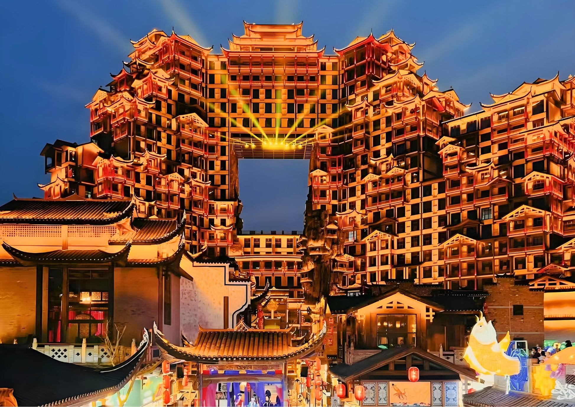 七十二奇楼は湖南省張家界にある、土家族文化を融合した幻想的な建築群です。昼間は独特な高床式建築を楽しみ、夜は光のショーで伝統と現代が交わる美しい世界へと誘われます。