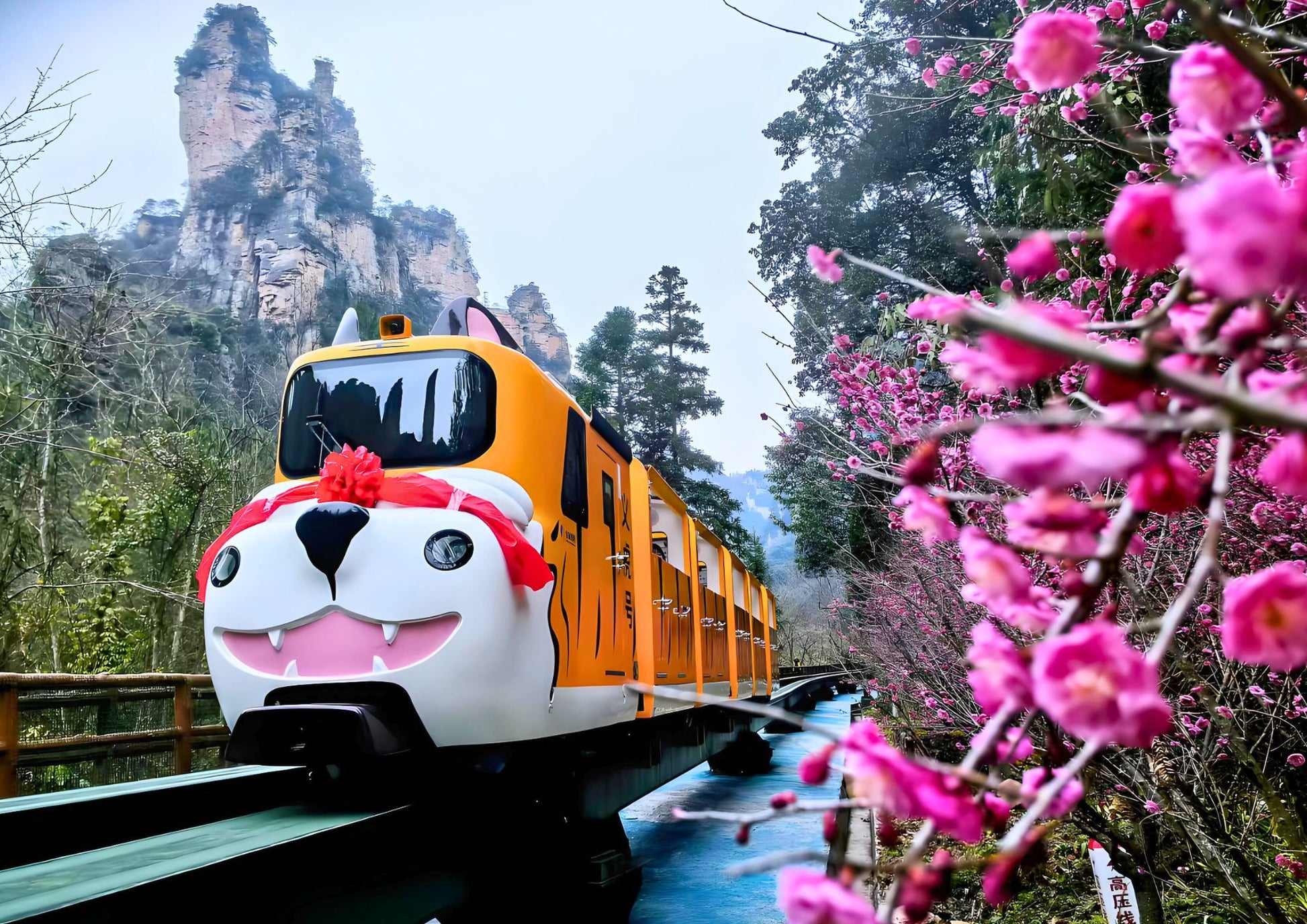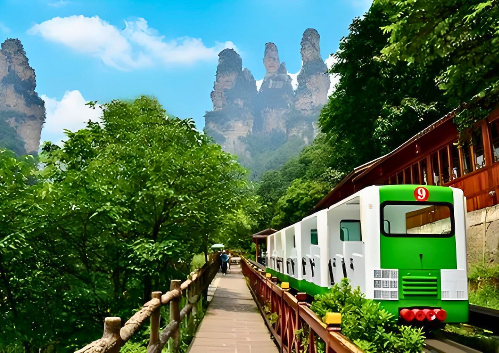 張家界の「十里画廊」は、5キロにわたる渓谷の散策路。両側にそびえる奇岩が展開する様子は、まるで山水画の世界。観光列車に乗りながら、自然の芸術を楽しめます。