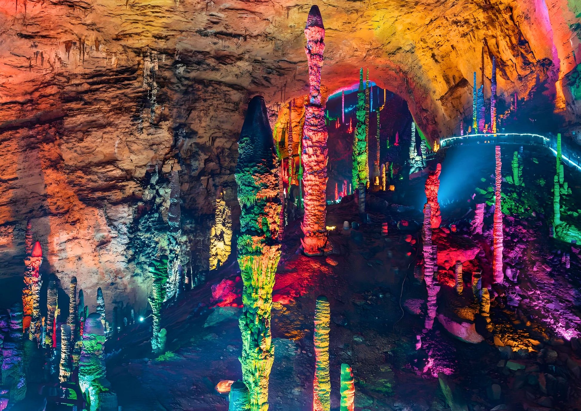 張家界の黄龍洞は、鍾乳石と地下川が織りなす神秘的な地底世界。幻想的な景観が広がり、自然の驚異を間近で体感できます。