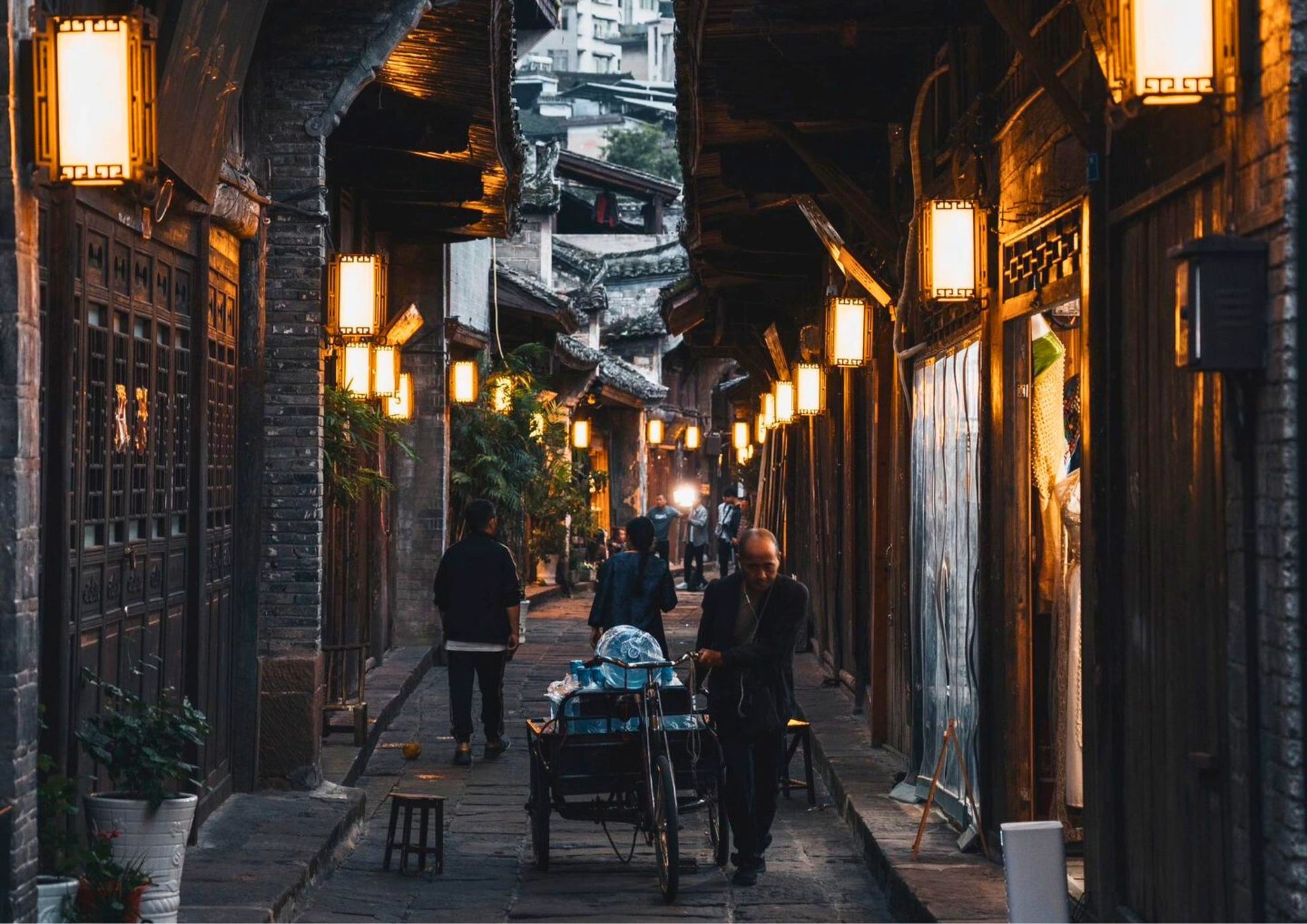 後溶街は湖南省張家界にある、土家族の風情あふれる古い通りです。石畳の道沿いに伝統的な高床式建築が並び、夜には提灯が灯り、地元の美味が香り、少数民族の雰囲気と賑わいを満喫できます。