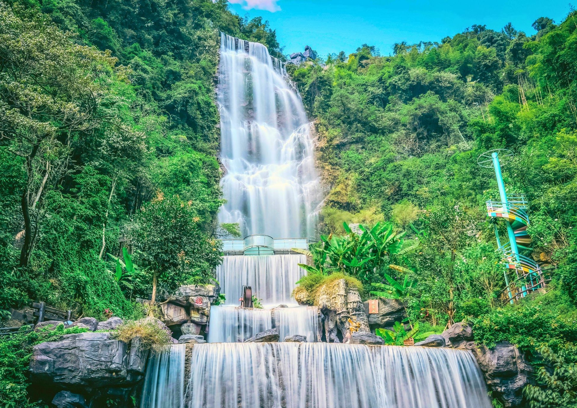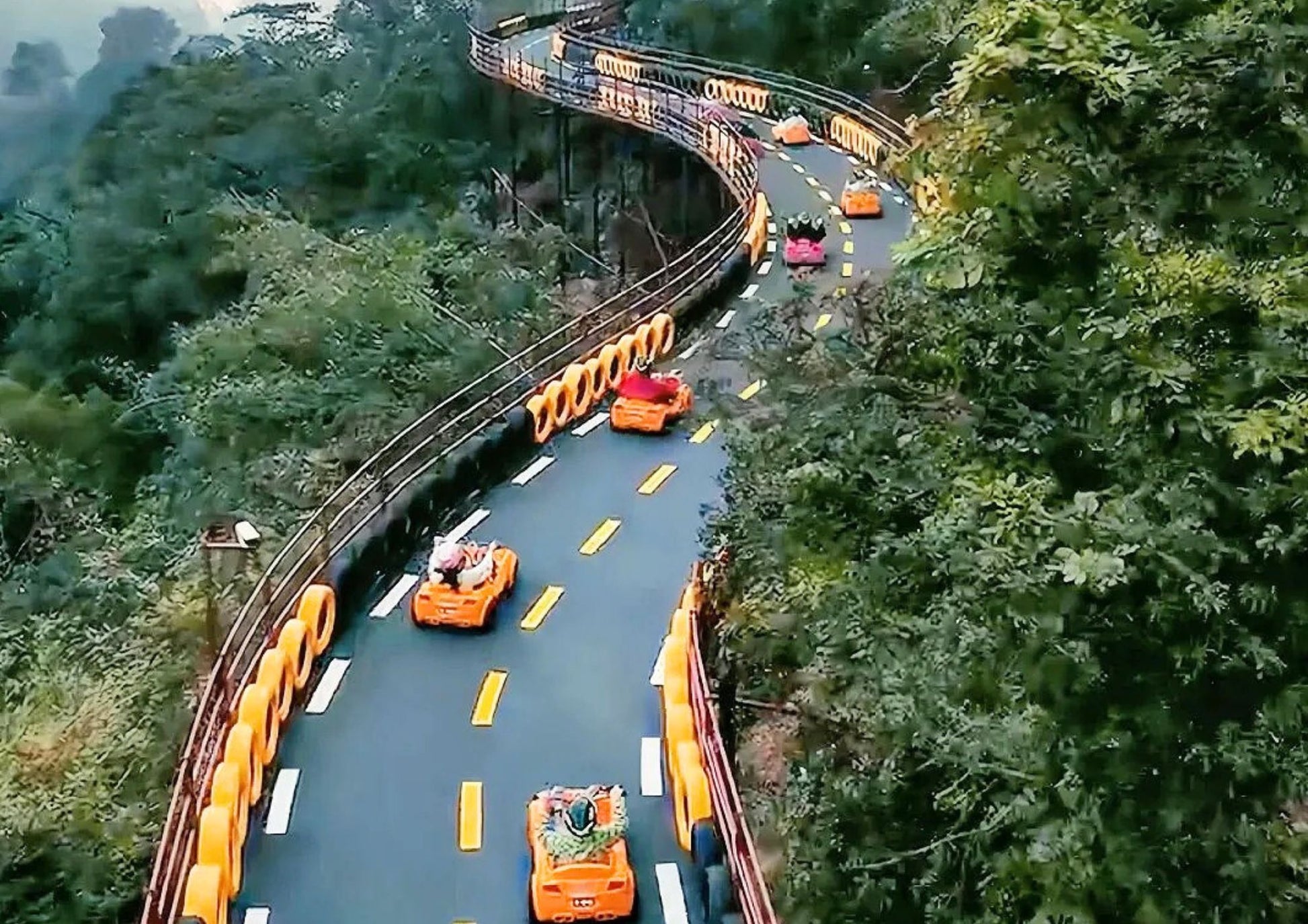 Bijiashan Waterfall cascades through ancient forests with emerald pools. Hike and climb along the streams for an adrenaline rush in nature's "oxygen bar"!  Gulong Canyon is famed for its stunning gorge, crystal-clear streams, and thrilling rafting. Walk the glass bridge or brave the rapids—experience nature’s grandeur and adventure at its best!Qingyuan's "Sky God's Palm" is a viral cliffside platform shaped like a giant hand jutting over 100m above the canyon—heart-pounding views for daredevil selfies!  Gulong Canyon Coaster - A 3680-meter track with 28 thrilling turns, gliding purely by gravity! Control your speed as you dare, while soaking in the stunning canyon views. A perfect blend of adventure and nature’s beauty. Gulong Canyon Cliff Coaster - Wild 1080° thrill ride! Soar off cliffs, dive through waterfalls, and spiral down 50-story drops at breakneck speed. Pure adrenaline! With "Wiegand self-braking system" and multi-safety locks, security meets extreme excitement—unforgettable!  Gulongxia Rafting in Qingyuan, Guangdong, is a thrilling adventure! With a 6km route and a 378m drop, it offers breathtaking gorges and roaring rapids, making it the most exciting rafting destination in South China for adrenaline seekers. Qingyuan's "Sky Glass Bridge" is one of the world's longest, spanning 530m above a canyon. Walk on clouds with heart-stopping views beneath your feet!