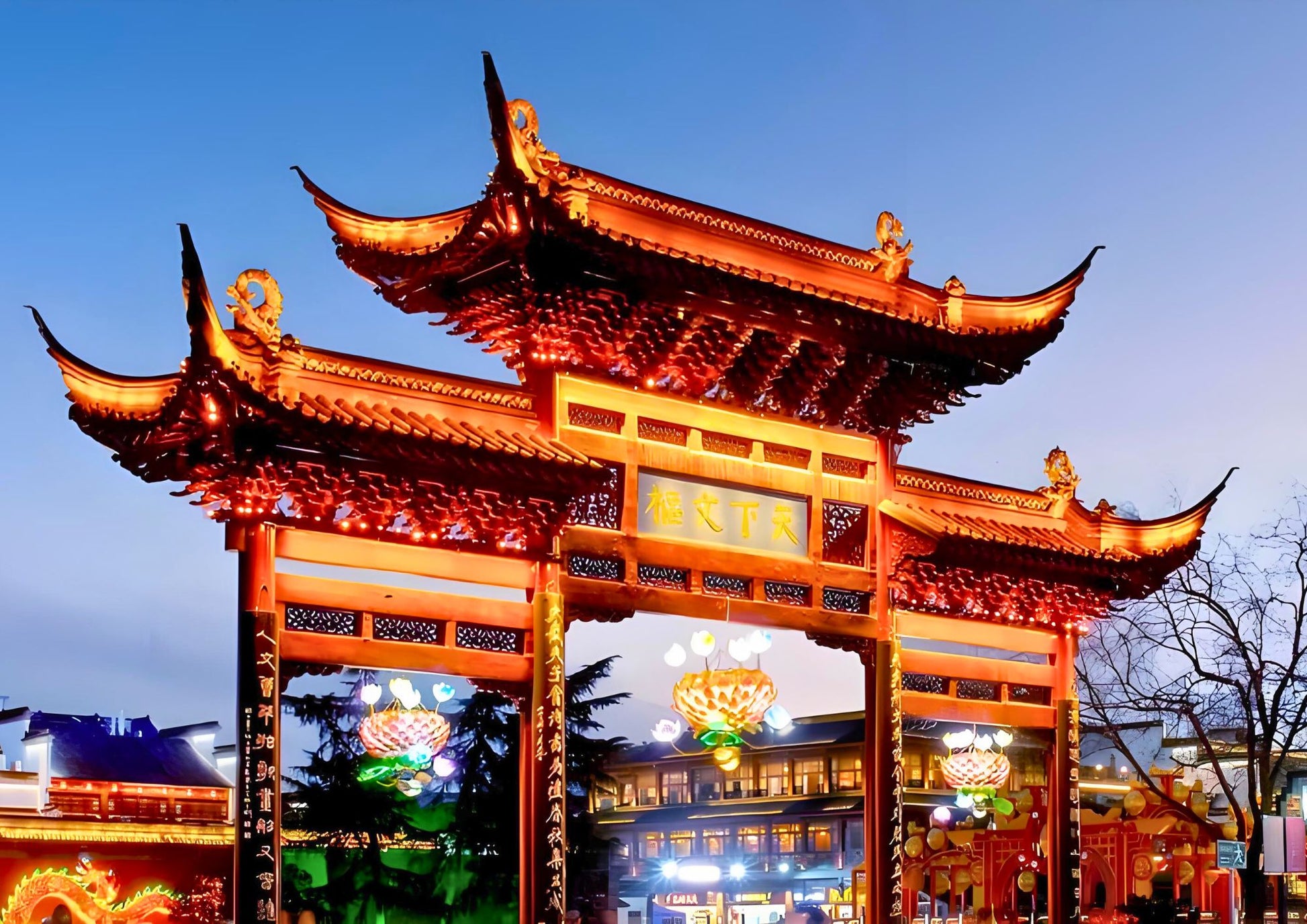 Confucius Temple in Nanjing, a cultural gem by the Qinhuai River. Stroll through ancient streets, savor local delicacies, and immerse in Ming-Qing charm. The night lights add a romantic touch to this Jiangnan water town.