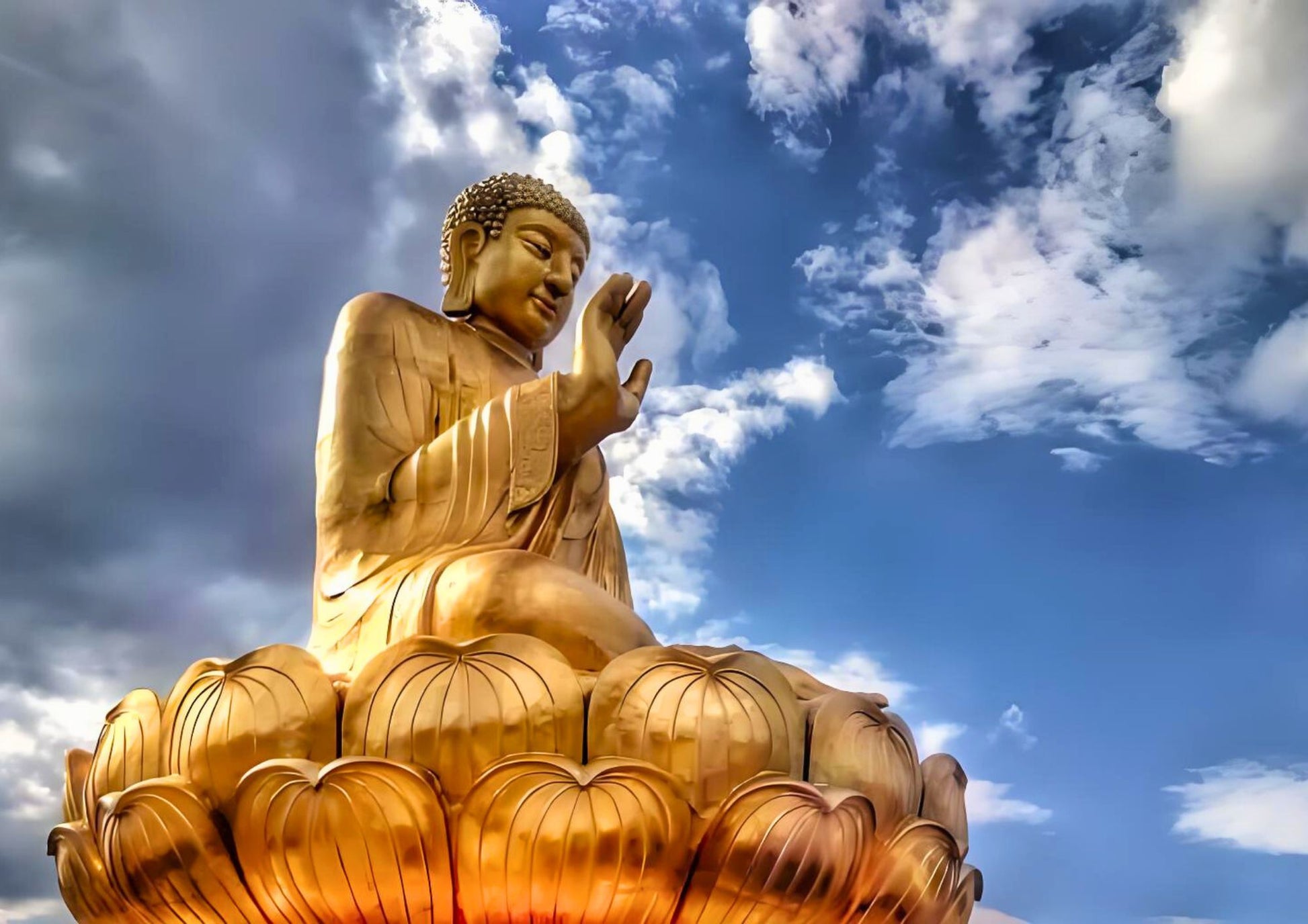The Lingshan Grand Buddha in Wuxi, an 88-meter bronze colossus standing by Lake Tai. Its serene gaze overlooks all, while the Brahma Palace dazzles with gold - a sacred blend of Zen and artistry, perfect for spiritual renewal.