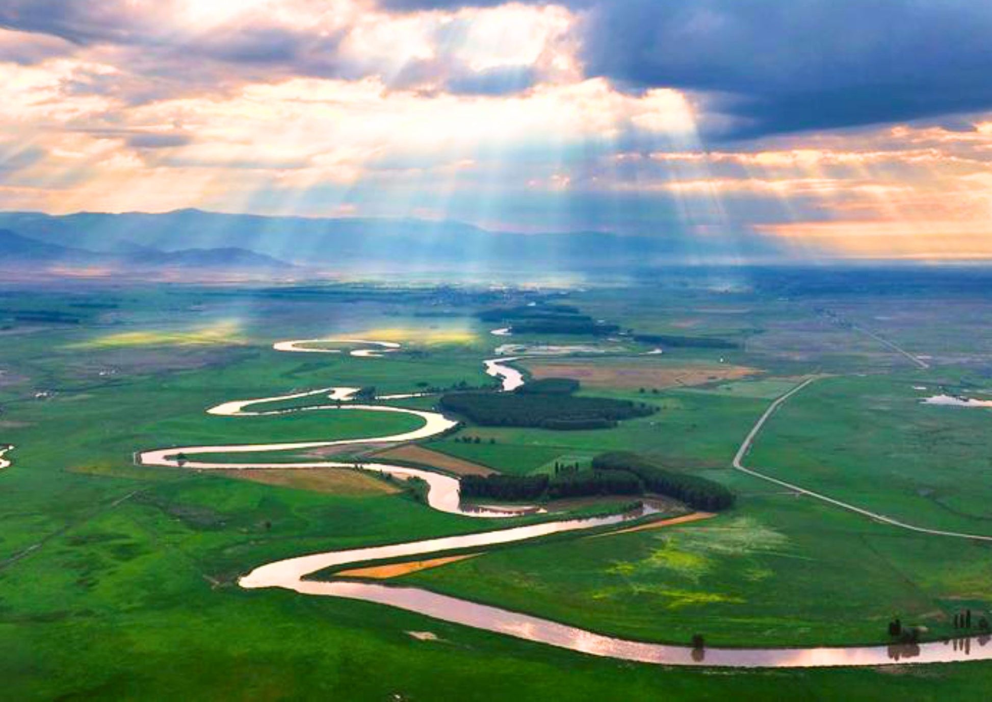 The Nine Turns and Eighteen Bends, located in Mohe County of the Greater Khingan Mountains, is a stunning river meander winding through pristine forests. At dawn, mist shrouds the landscape, creating a fairy-tale scene, perfect for photography and nature exploration.