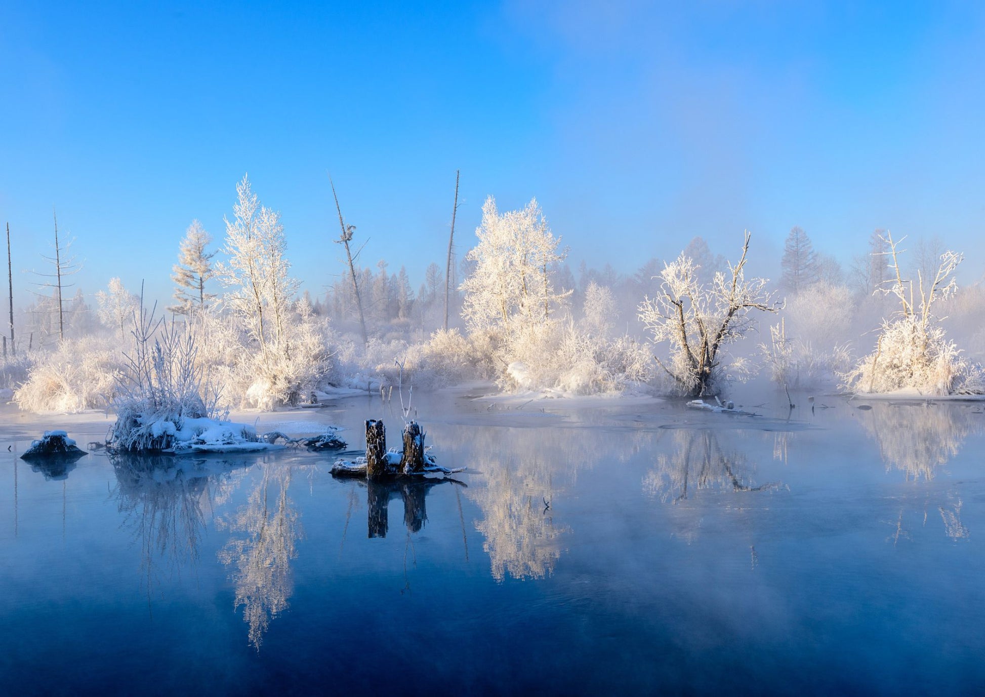 D02: Hotel breakfast → Harbin Taiping International Airport → (Domestic flight) Mohe Gulian Airport → Arctic Village (Northernmost Post Office, "Finding North" Monument) → First Bend of the Heilongjiang River (S-shaped bend, scenic overlook) → Nine Turns and Eighteen Bends (snow-covered forest sunset, rime scenery) → Check-in at hotel/homestay