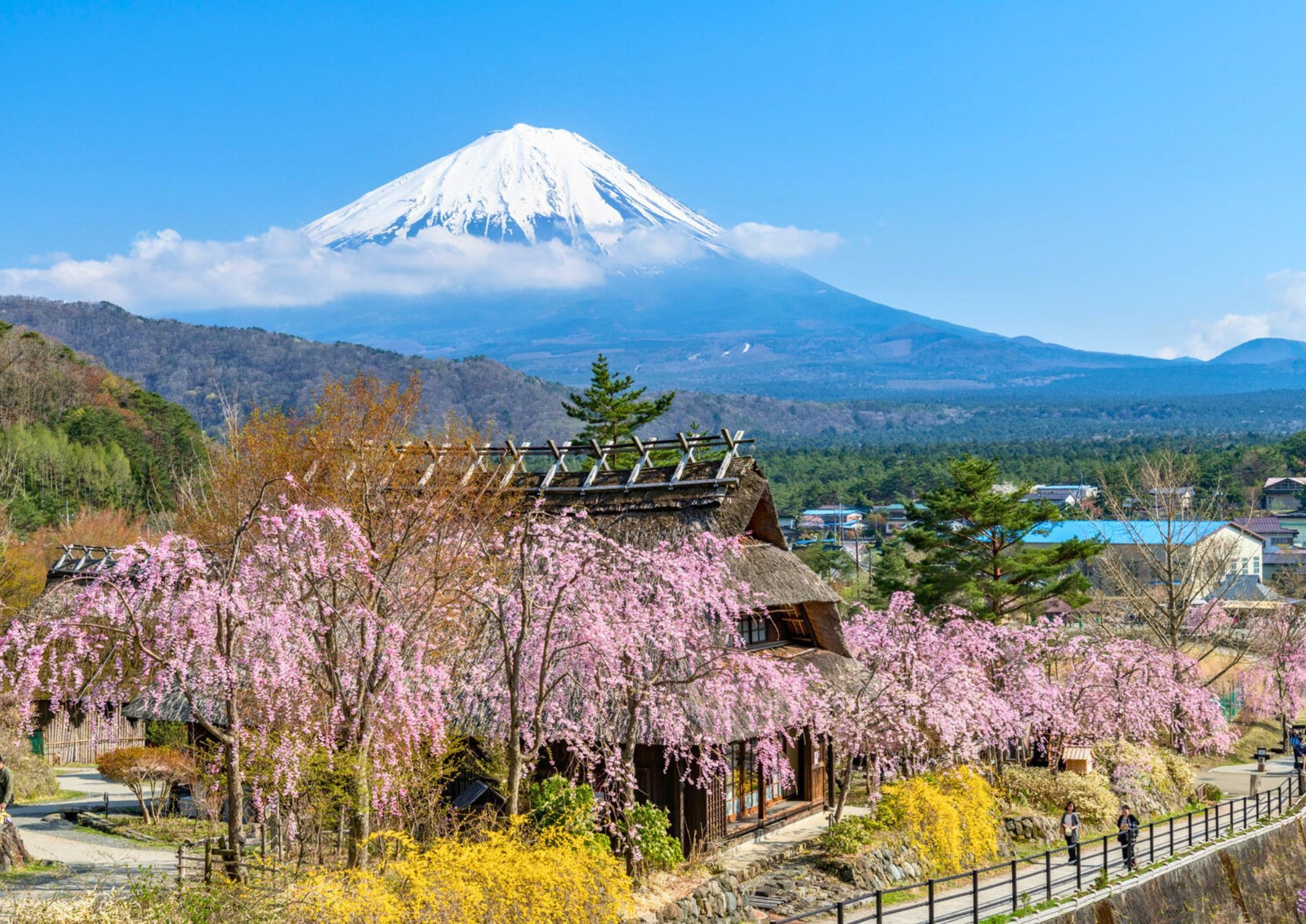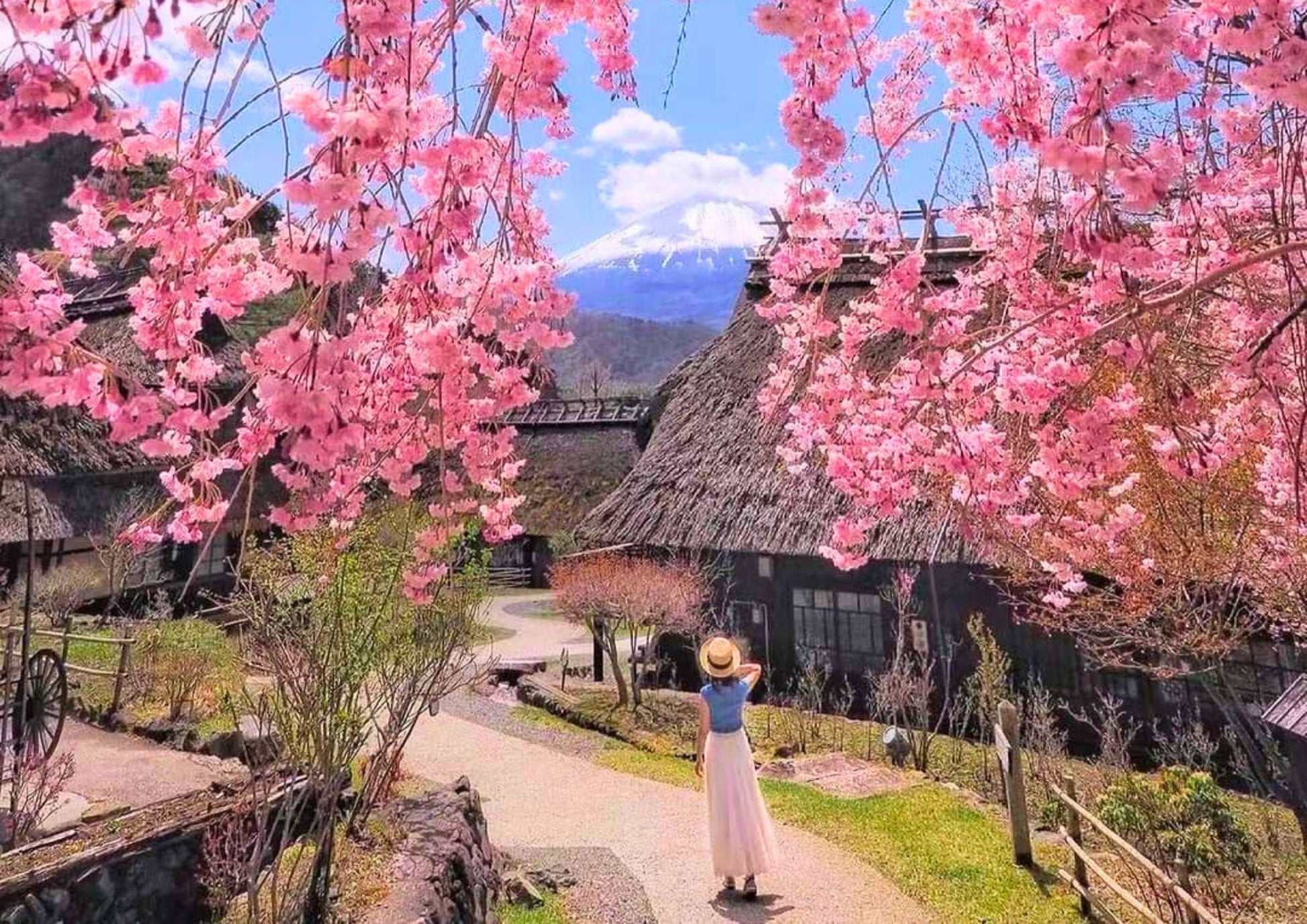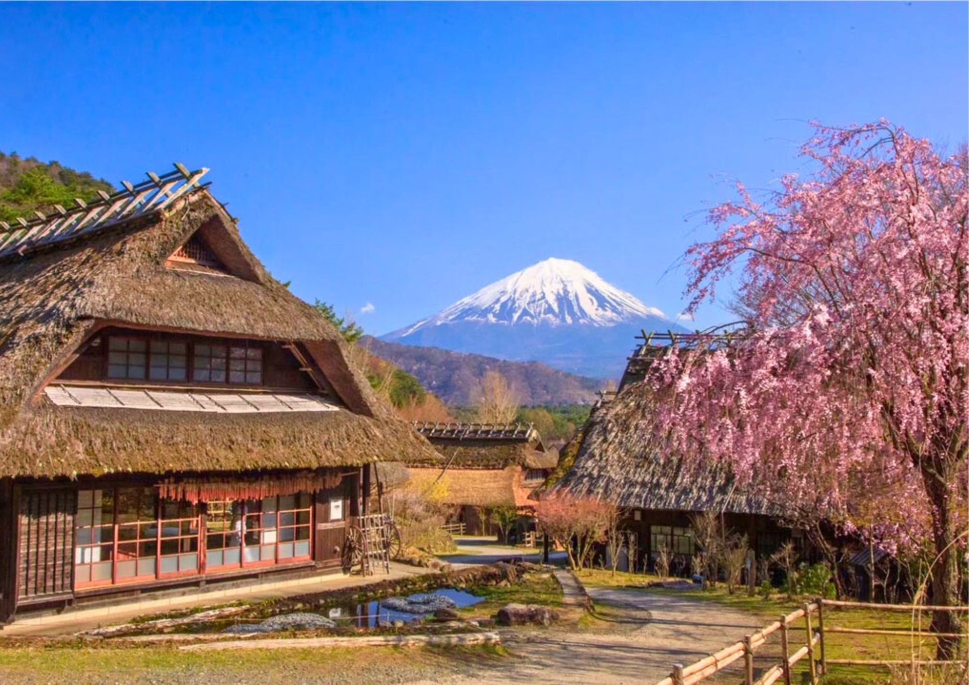 西湖療癒之里根場重現了傳統合掌造村落,茅草屋頂與富士山相映成趣。這裡可以體驗手工藝、品嚐鄉土料理,四季景色如畫,是感受日本田園風情的療癒之地。