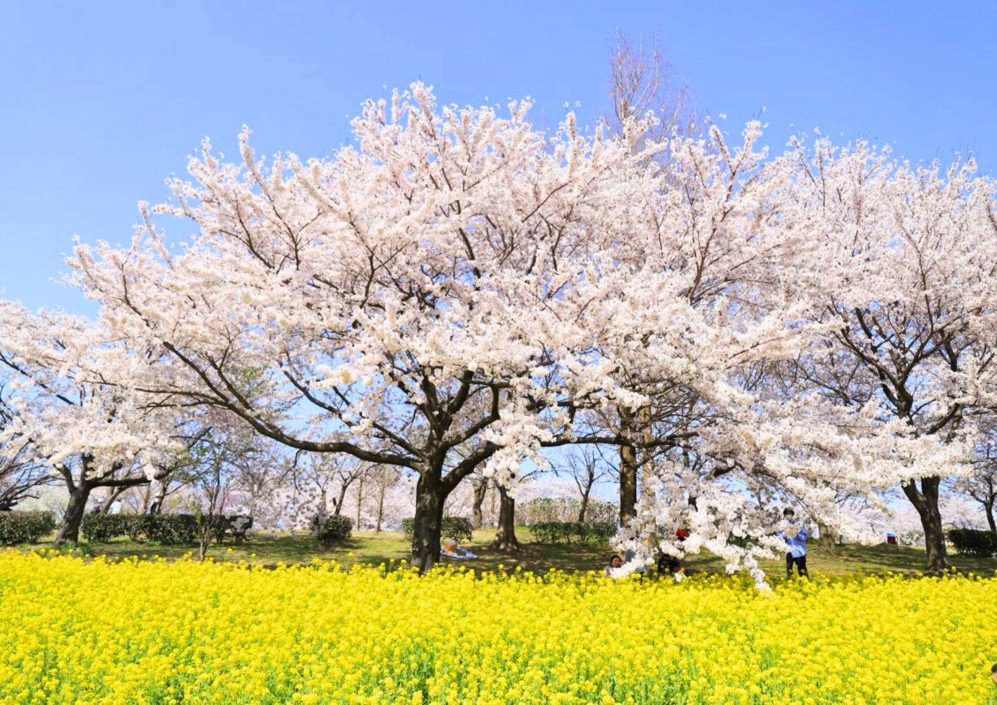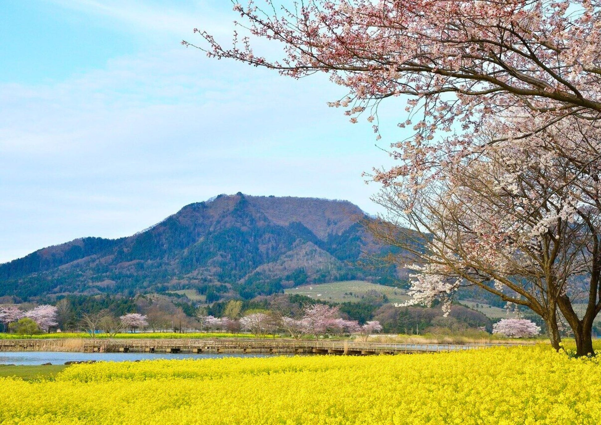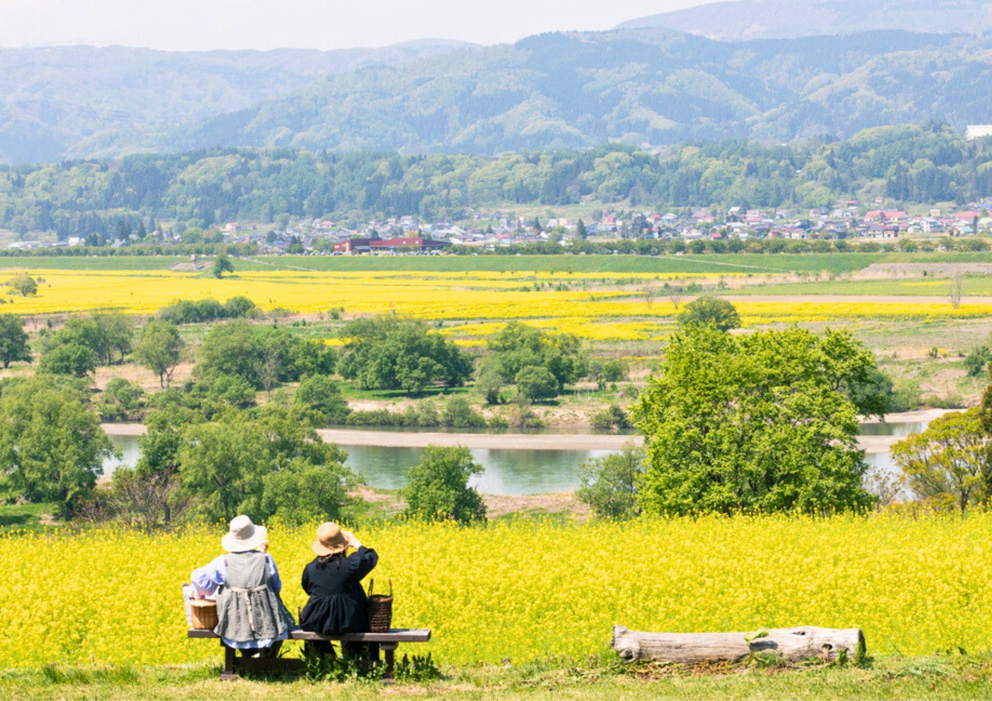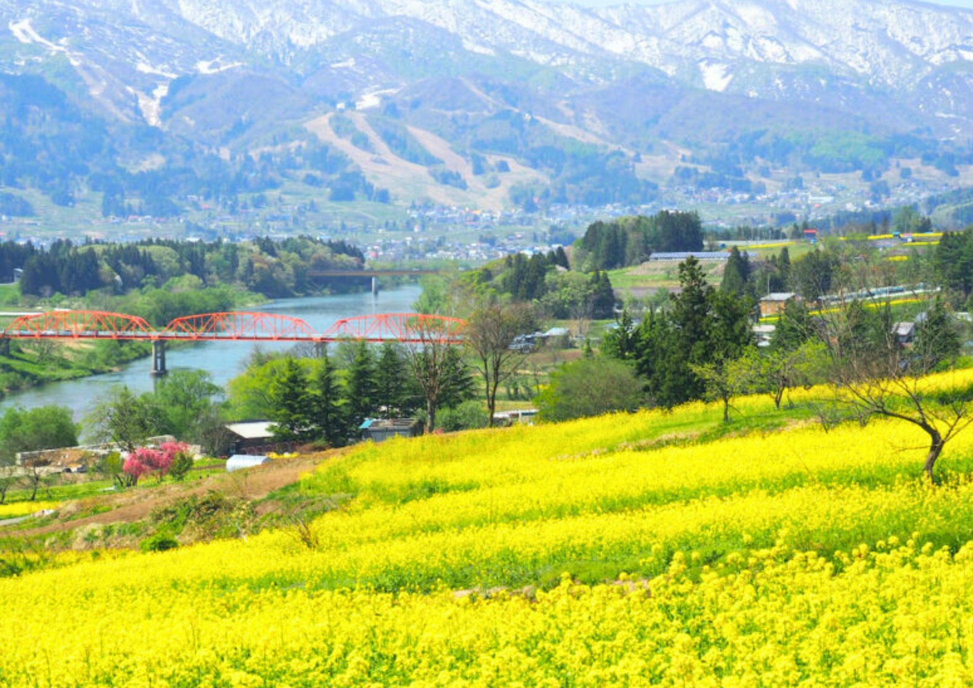 飯山菜の花公園是春季限定的金色奇蹟,30萬株油菜花田如地毯般鋪展,與北阿爾卑斯山雪峰相映。漫步花海、品嚐油菜花冰淇淋,感受大地甦醒的療癒時刻!