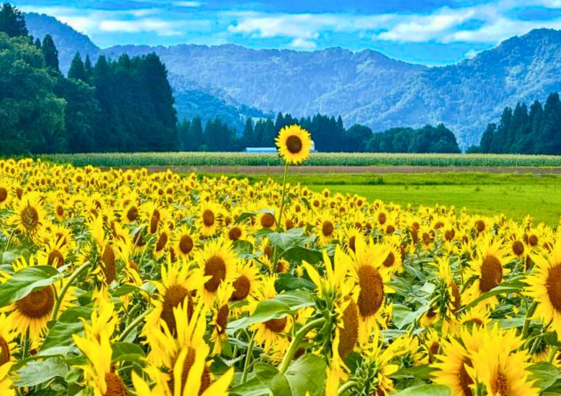 津南向日葵花田是夏季新潟的黃金奇蹟,百萬朵向日葵齊綻放,與壯闊山脈相映成趣。漫步花海小徑,感受陽光與花朵交織的活力能量,是絕佳的拍照勝地!