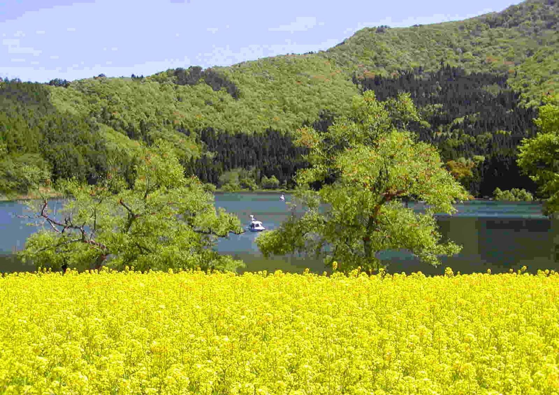北竜湖位於長野縣飯山市,是一座被群山環繞的秘境湖泊,四季景色各異。冬季湖面結冰,成為絕佳的冰釣勝地;夏季則綠意盎然,適合划船與露營,是遠離喧囂的天然樂園。