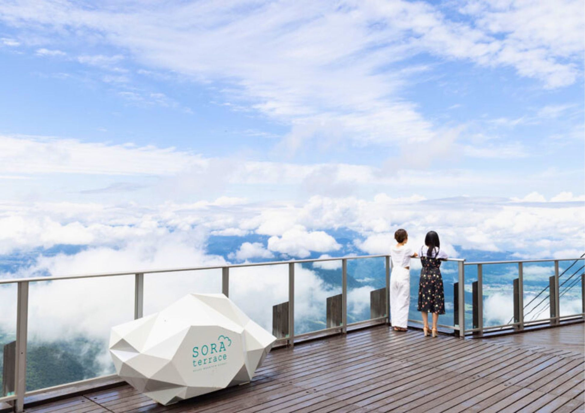 SORA terrace是長野縣志賀高原的絕景雲海咖啡廳,海拔1770公尺。坐擁360度全景視野,晨間雲海與夕陽染紅天際的魔幻時刻,讓人彷彿置身天空之城。