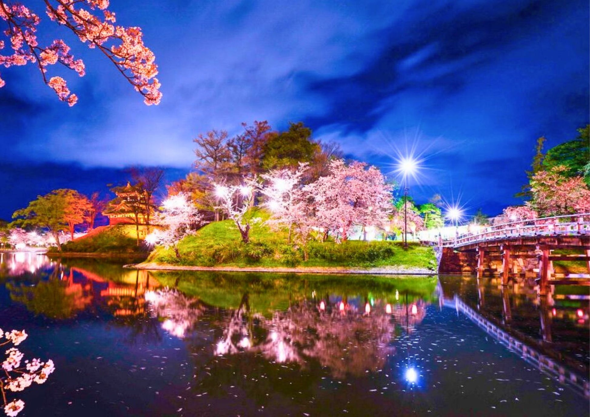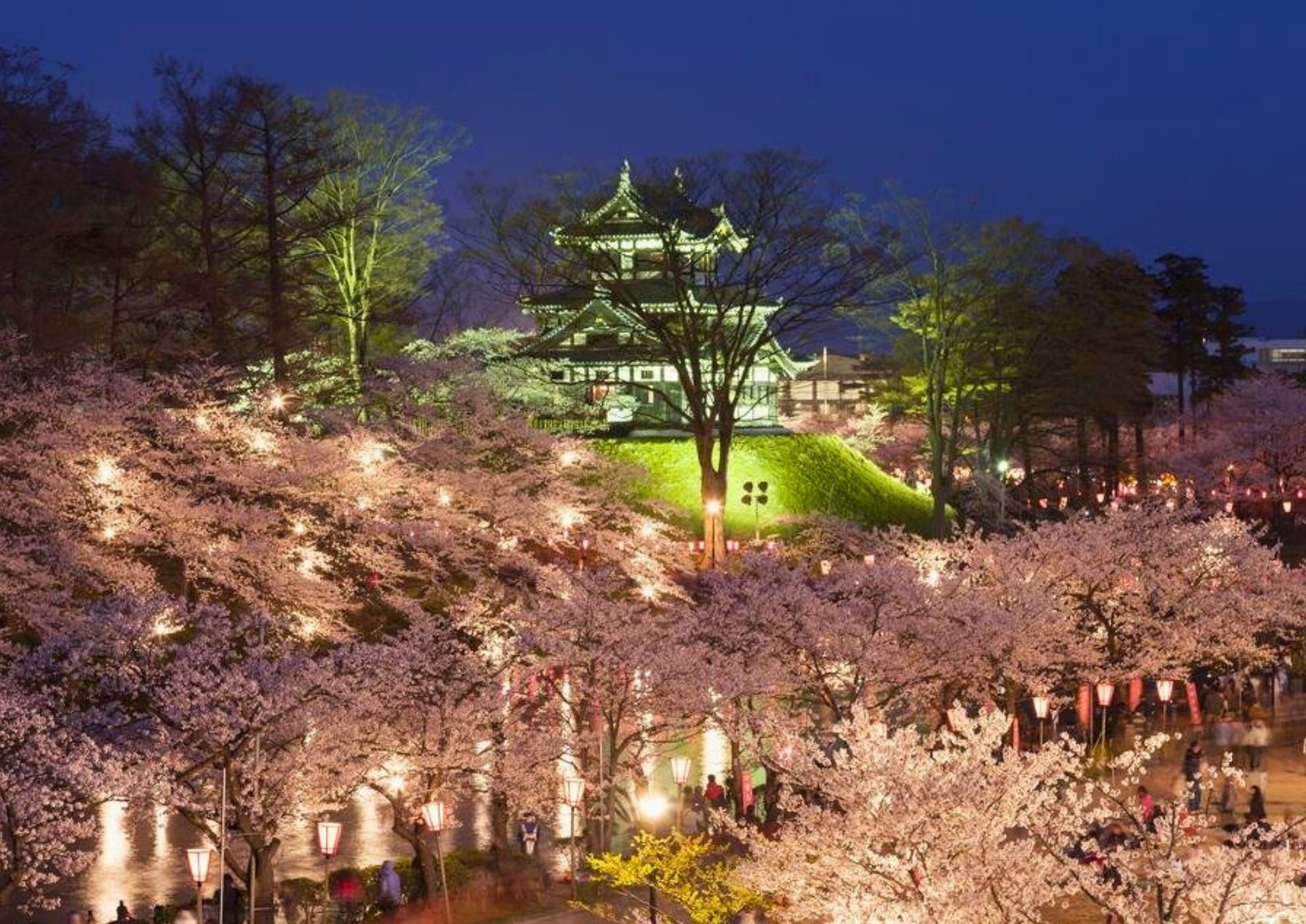 高田城址公園是新潟縣上越市的歷史名園,以江戶時代古城遺跡與千本櫻聞名。春季夜櫻點燈如夢似幻,護城河倒映天守閣,重現「天下名城」的浪漫風華。