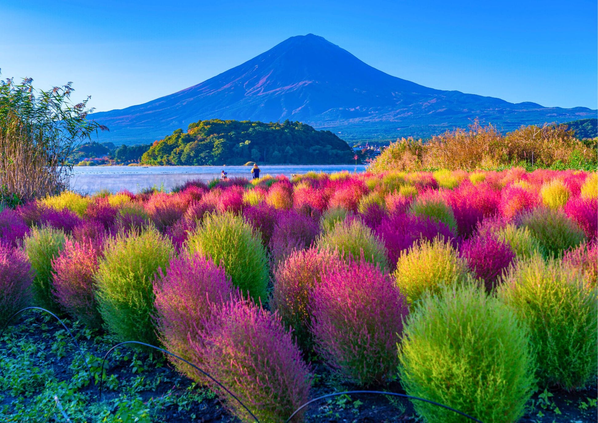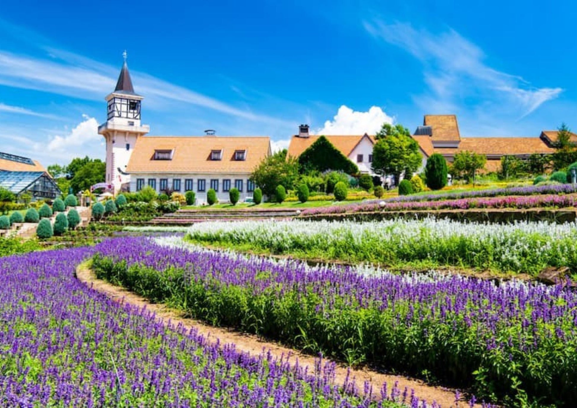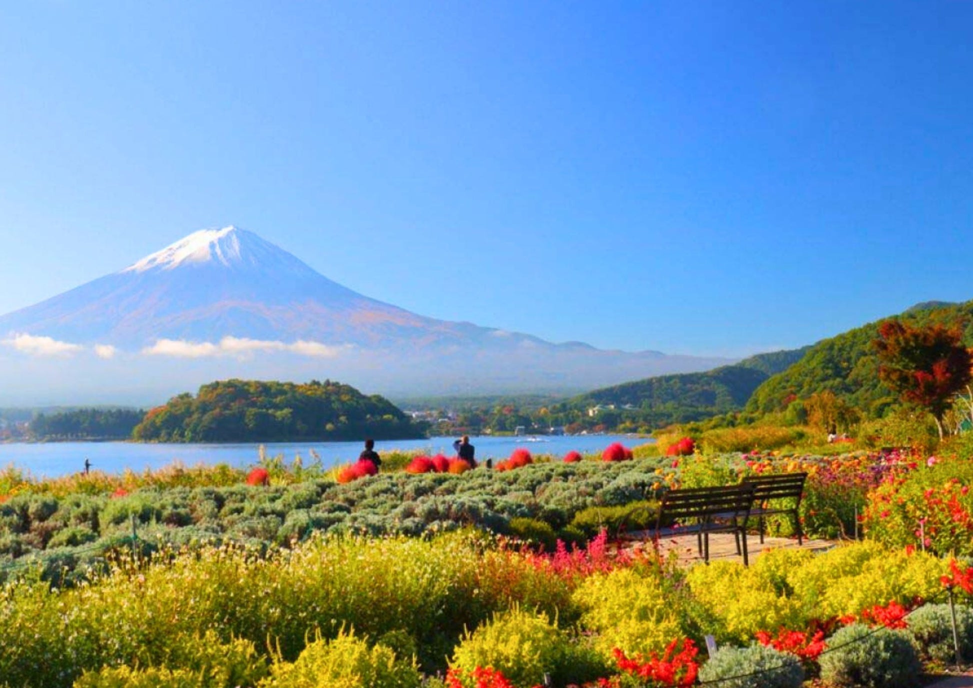 大石公園位於河口湖畔,以夏季薰衣草花海聞名,搭配富士山背景宛如明信片。四季花卉輪番綻放,湖光山色與花田相映,是富士五湖區最浪漫的打卡勝地。